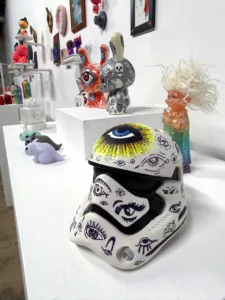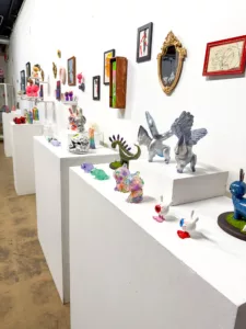 Showcasing a vibrant mix of 2D and 3D artwork, wall-hanging and standing pieces, this event highlights the incredible diversity of the designer toy world. Every piece is priced at $350 or less, making it the perfect opportunity to find one-of-a-kind holiday treasures.