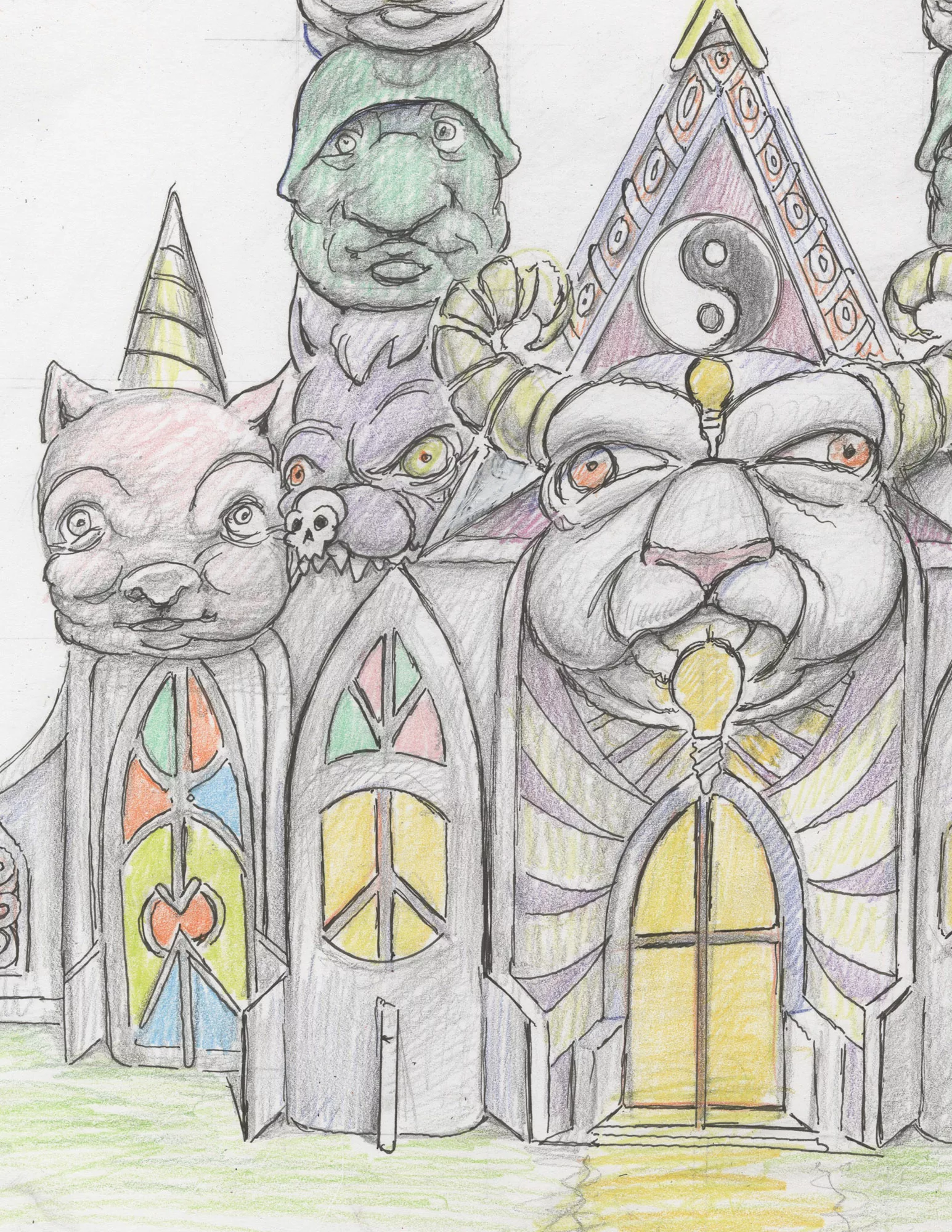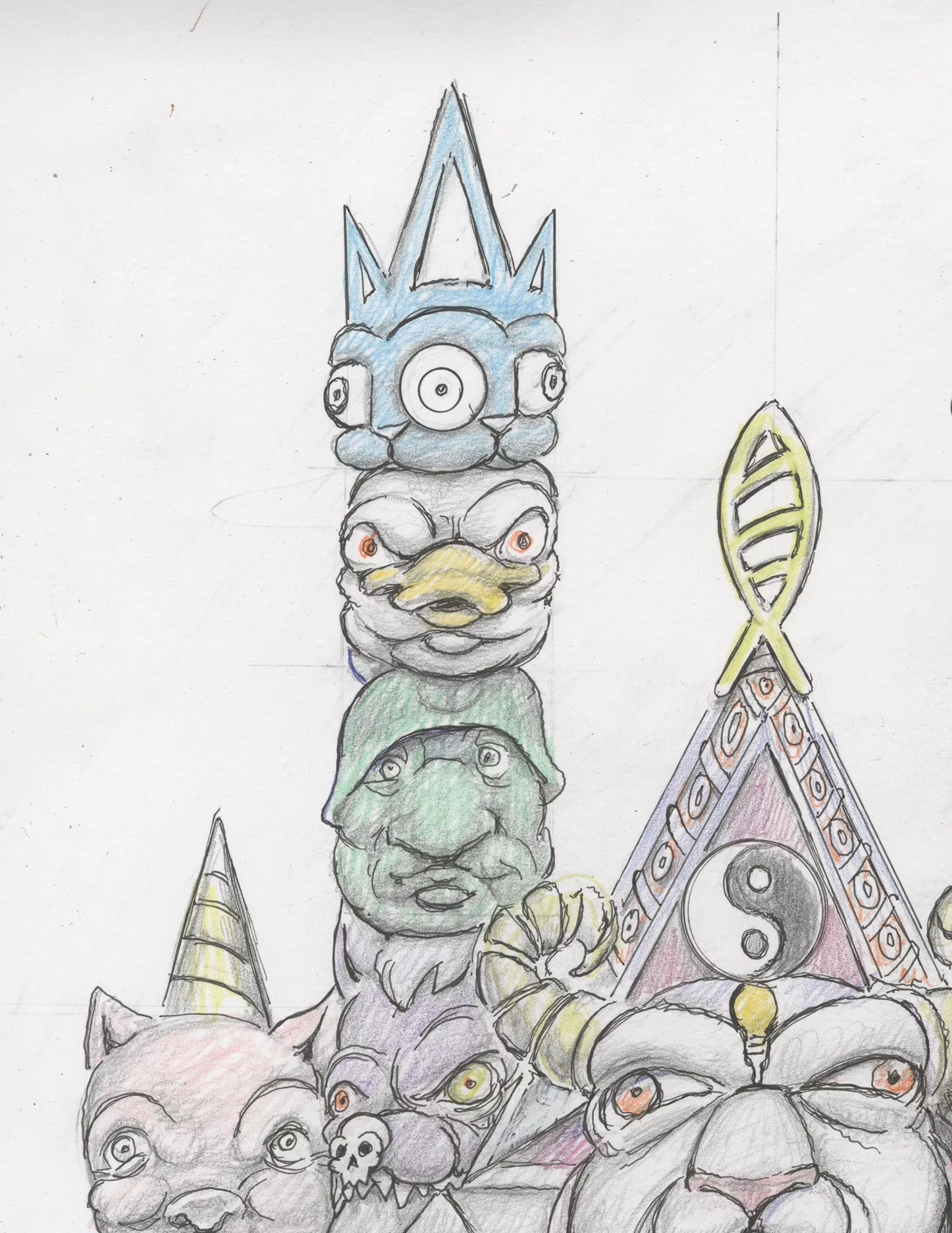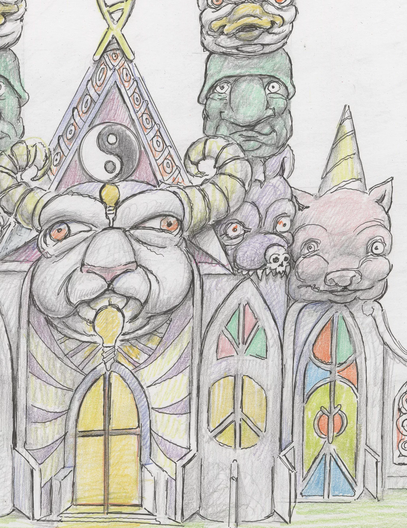 Each one of these drawings was created and used as keyframes designed to train A.I in English’s unique style for his Delusionville video series.