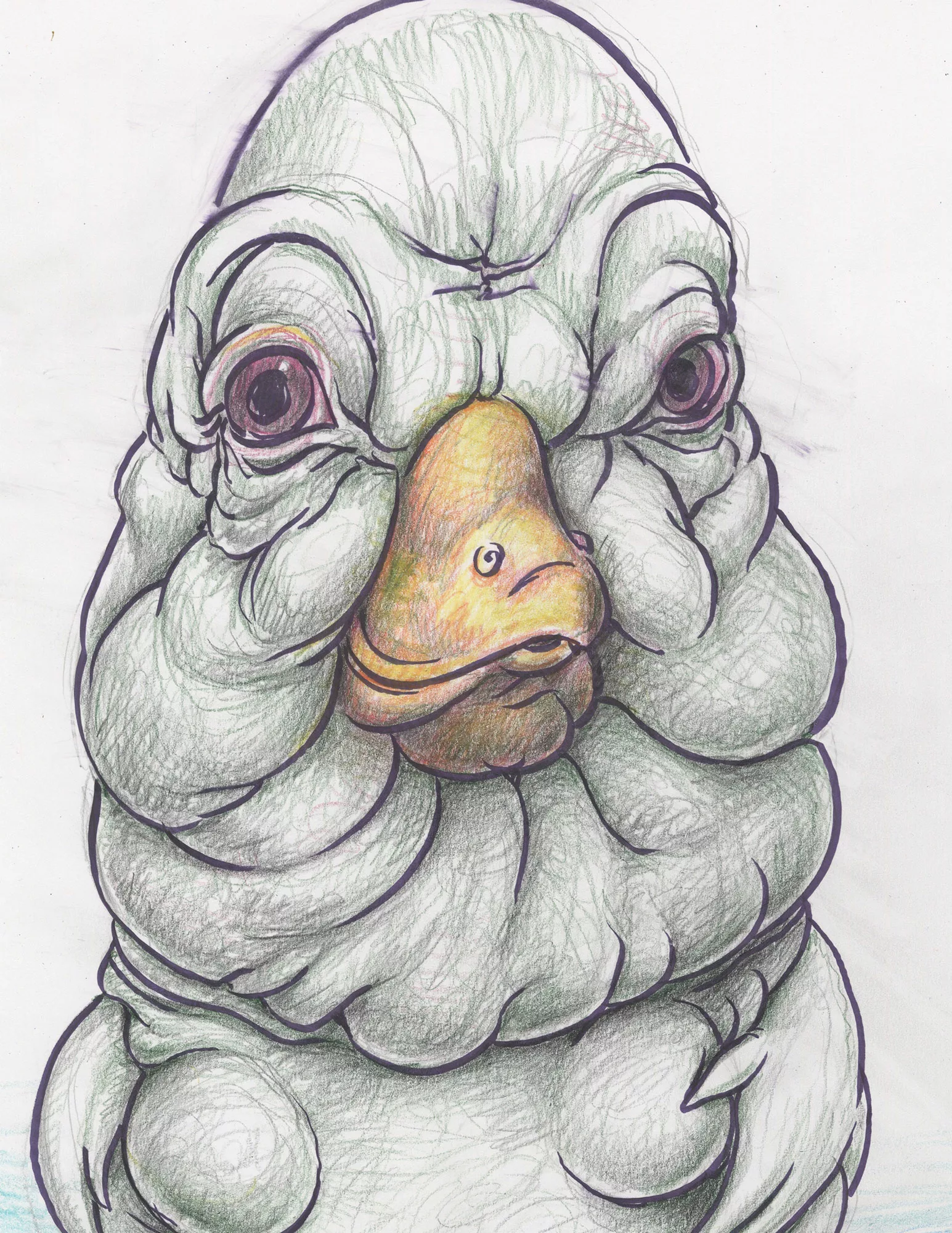 Each one of these drawings was created and used as keyframes designed to train A.I in English’s unique style for his Delusionville video series.