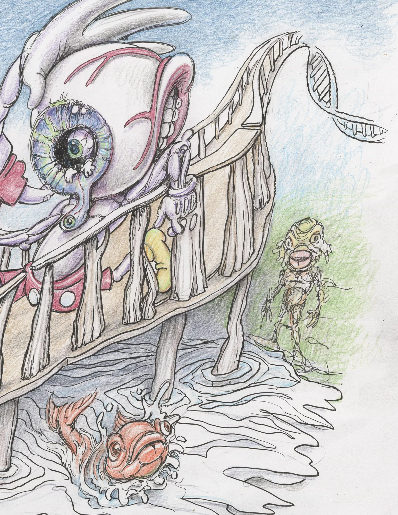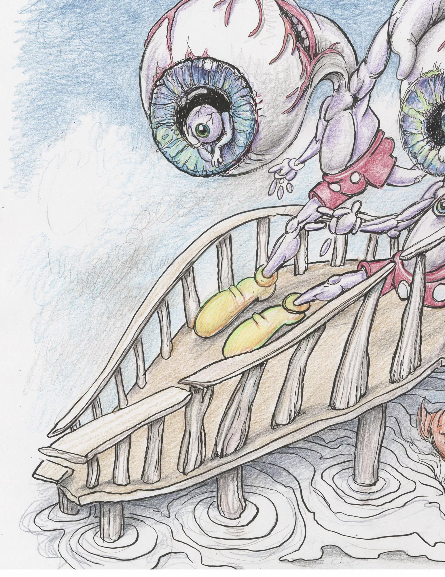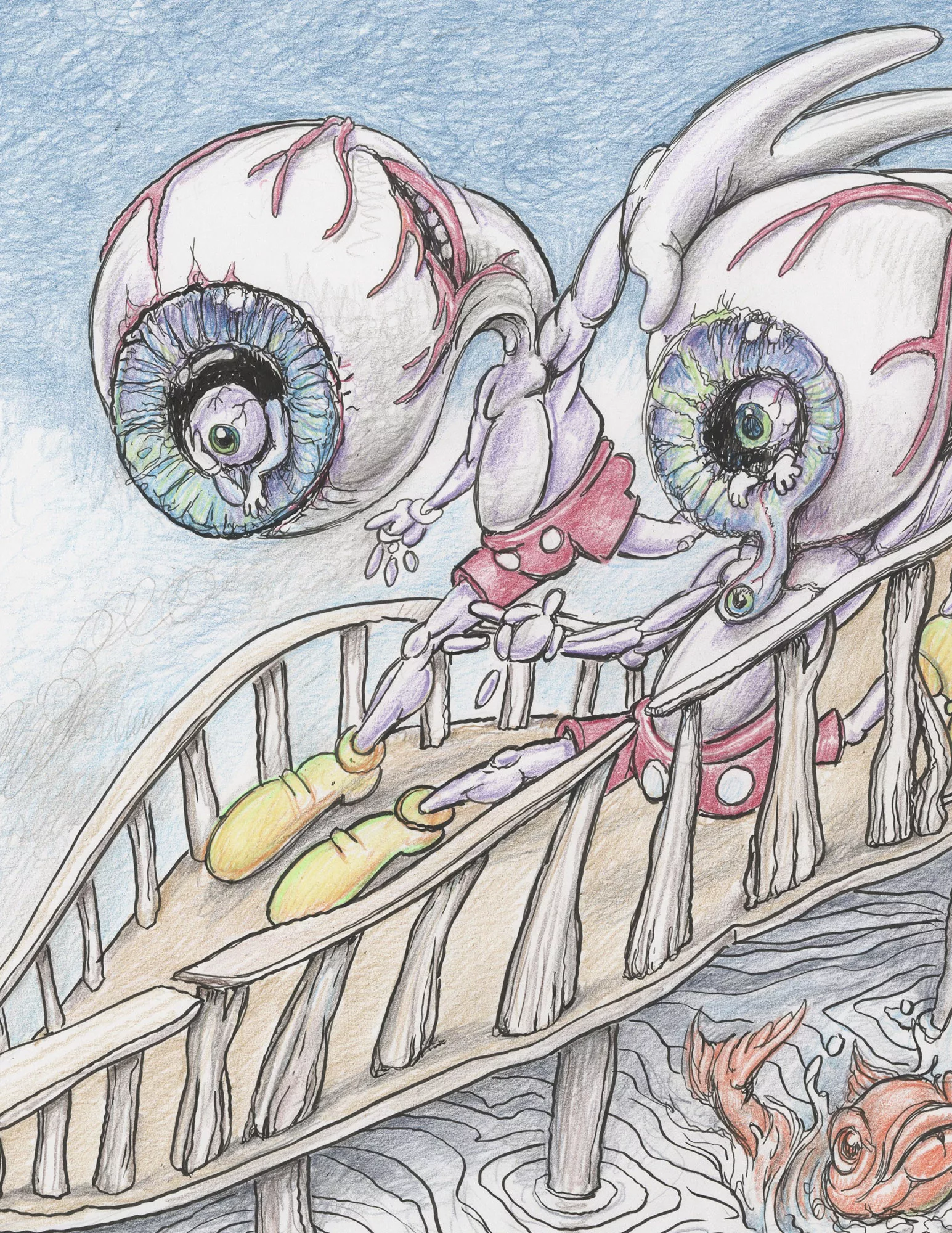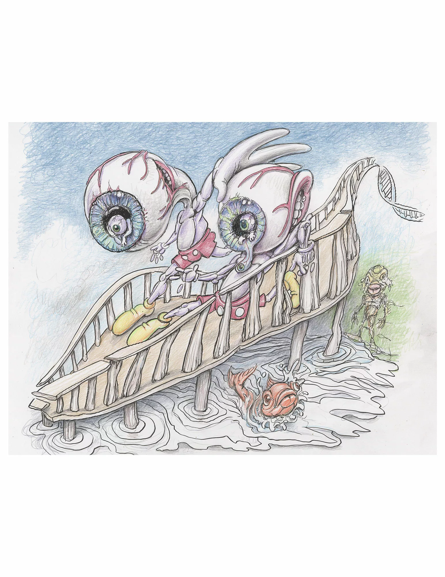 Original pencil, ink, and crayon drawing by Ron English