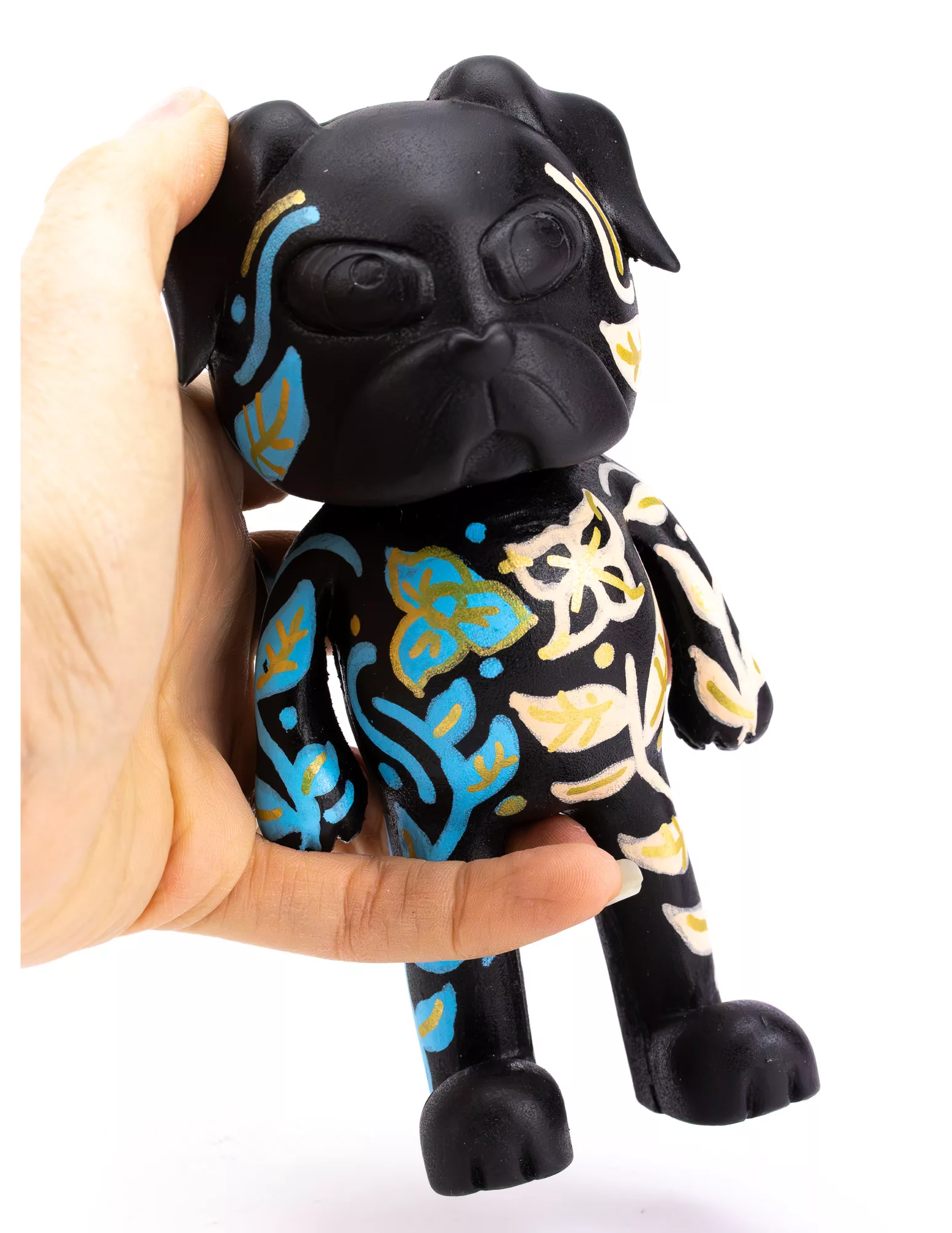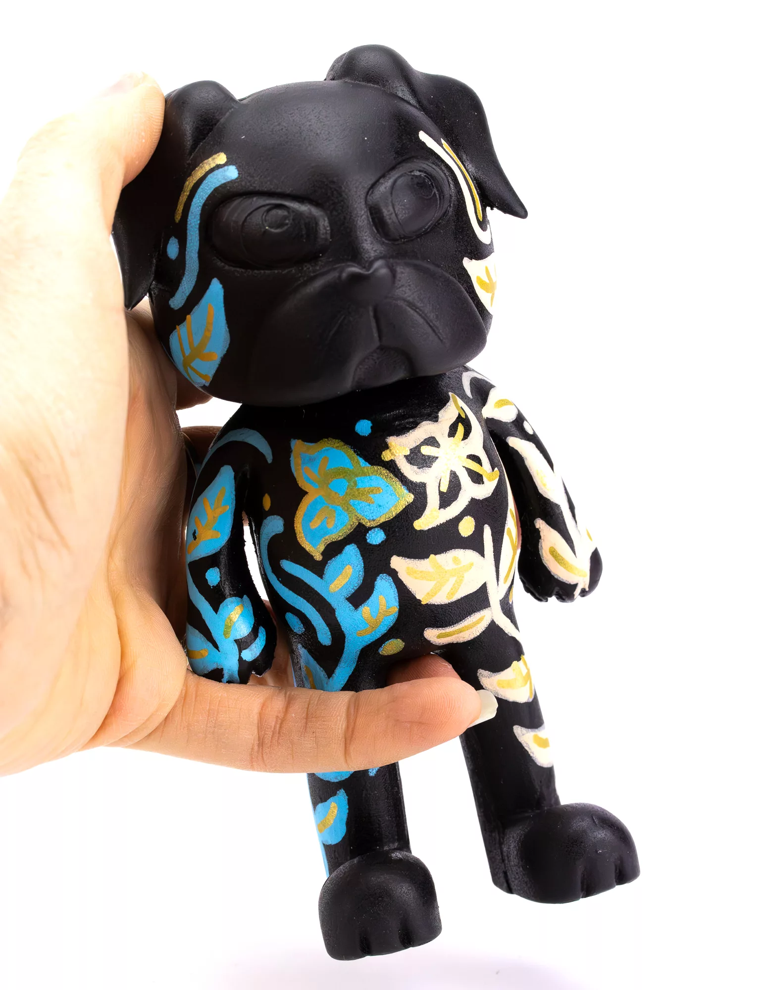Celebrate the next chapter of Chico with this special hand-painted floral design, inspired by the deep significance of flowers in Mexican culture. Each brushstroke is carefully crafted, turning our beloved pug into a vibrant canvas of color and meaning.
