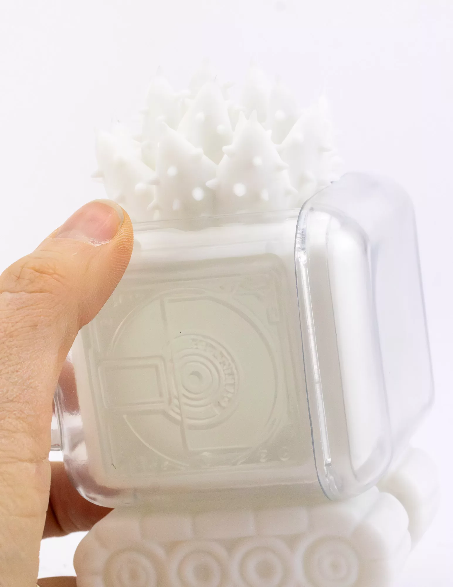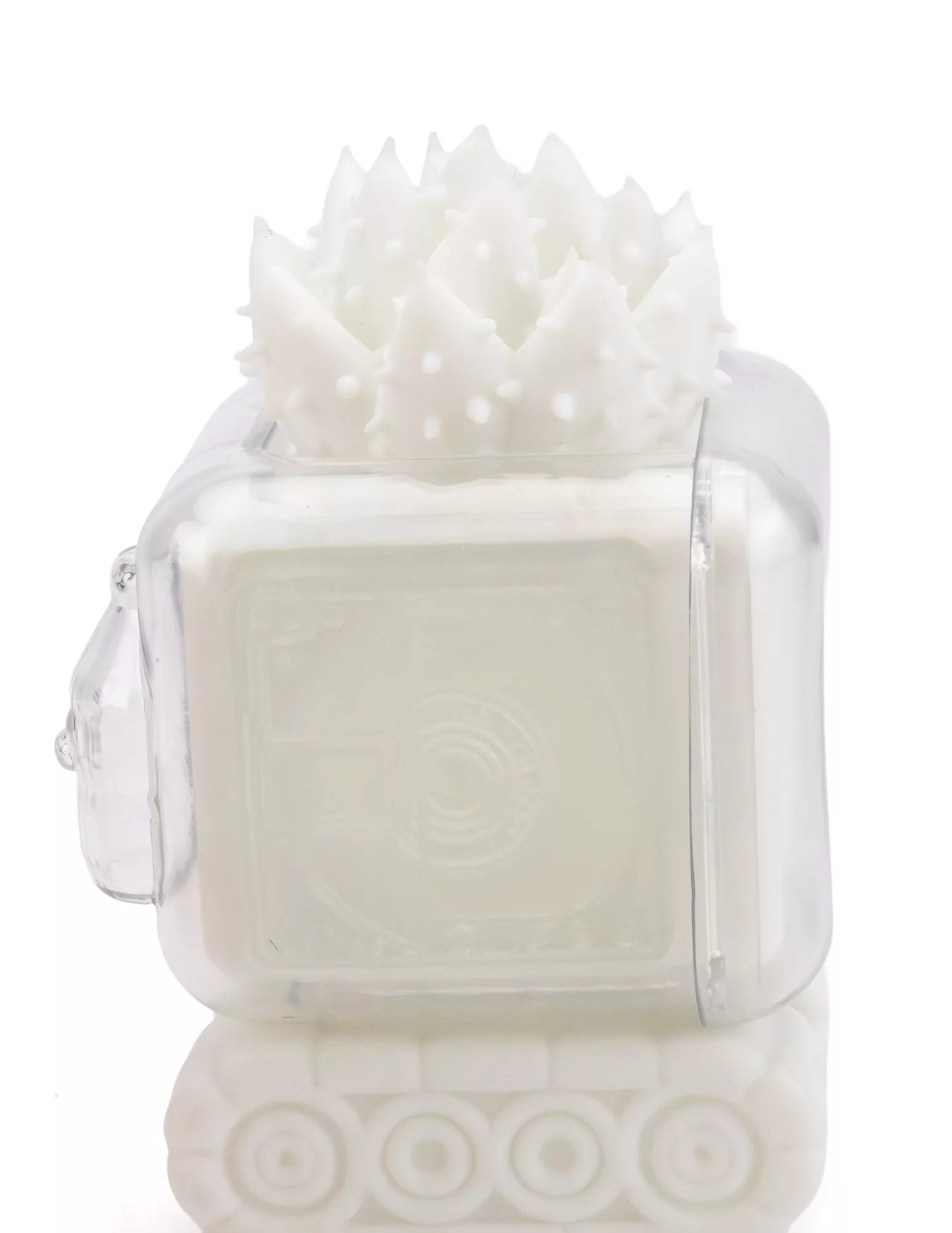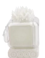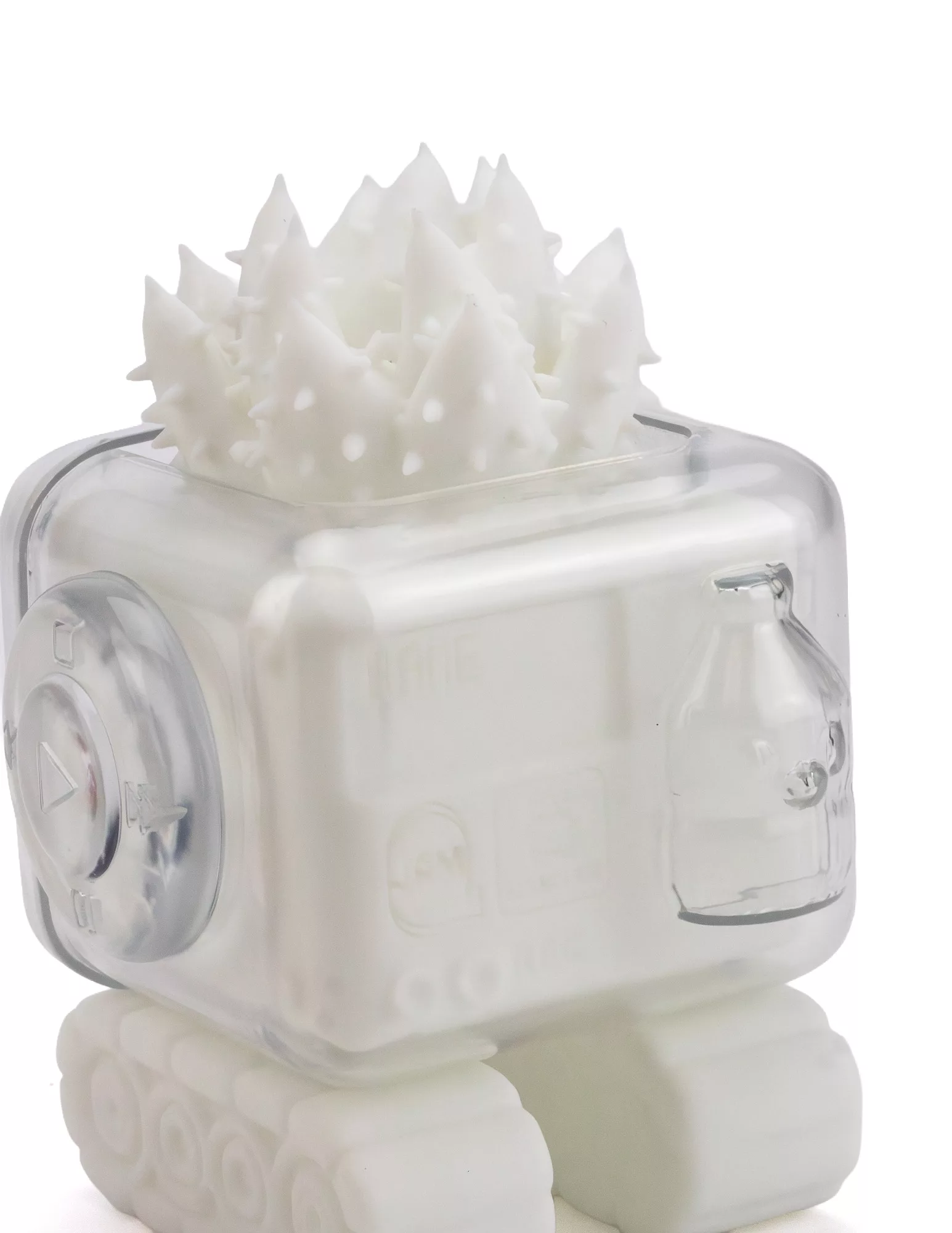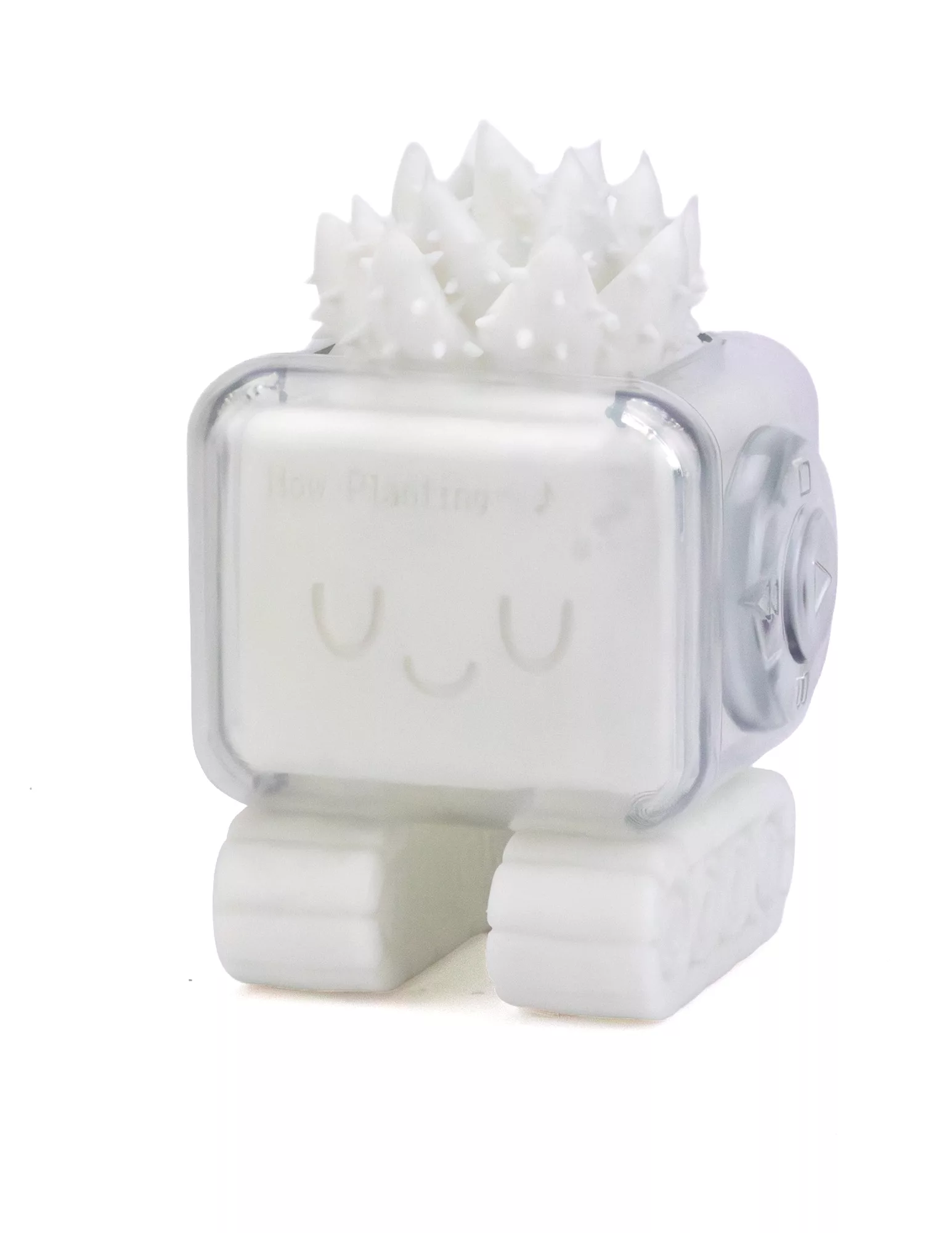 Once a music player, I now operate as a plant box for holographic plants, adding a touch of brilliance to your everyday life. The light from the plants, visible through my clear outer shell, shines like winter starlight.