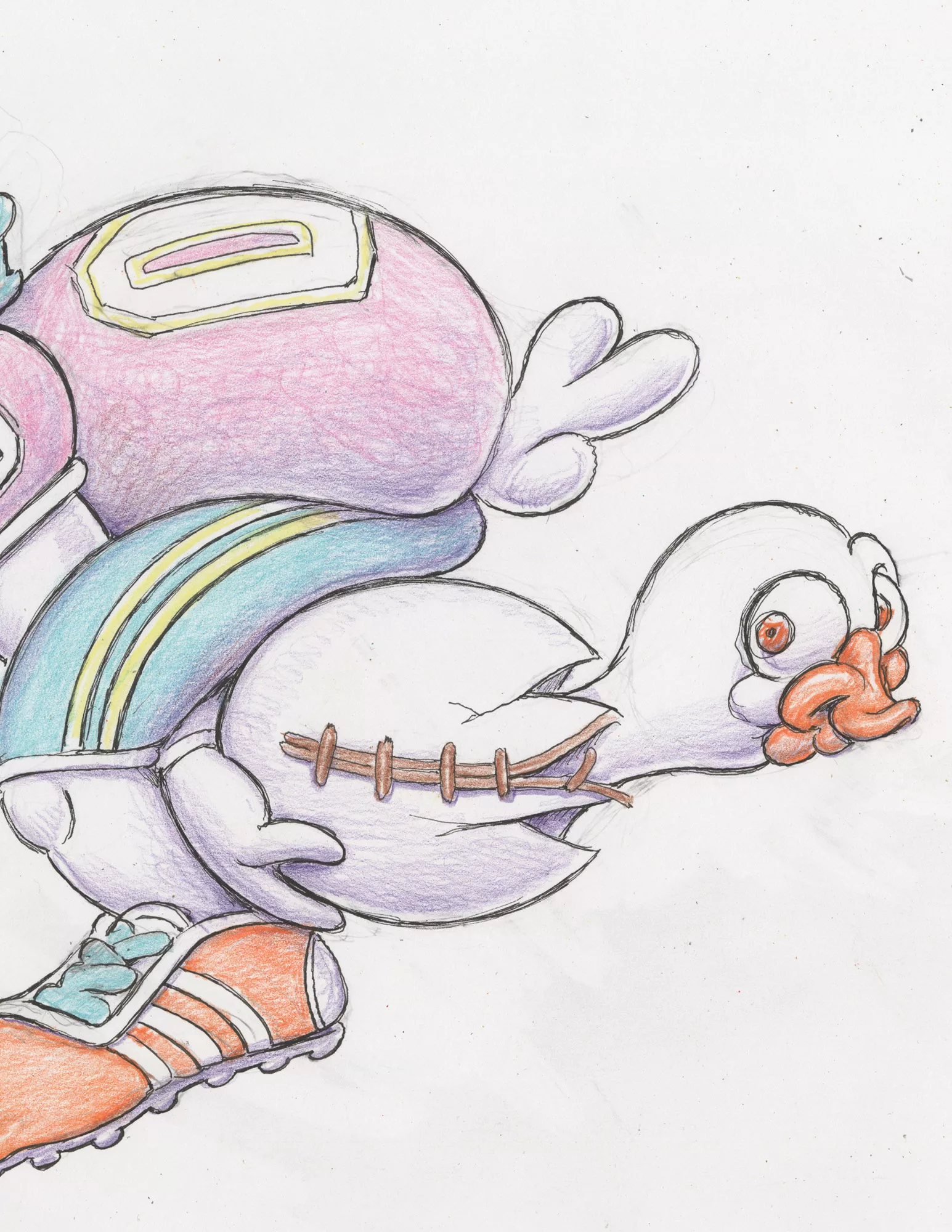 Each one of these drawings was created and used as keyframes designed to train A.I in English’s unique style for his Delusionville video series.