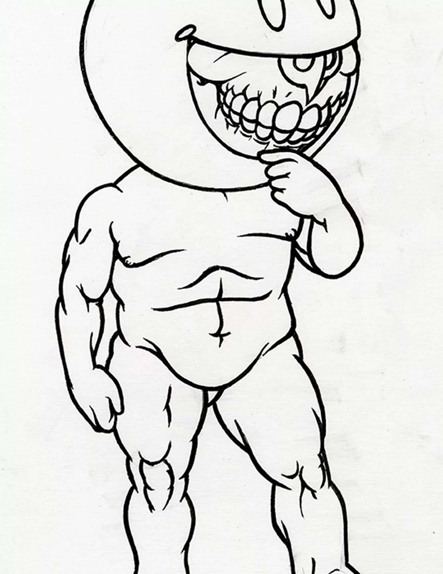 Each one of these drawings was created and used as keyframes designed to train A.I in English’s unique style for his Delusionville video series.