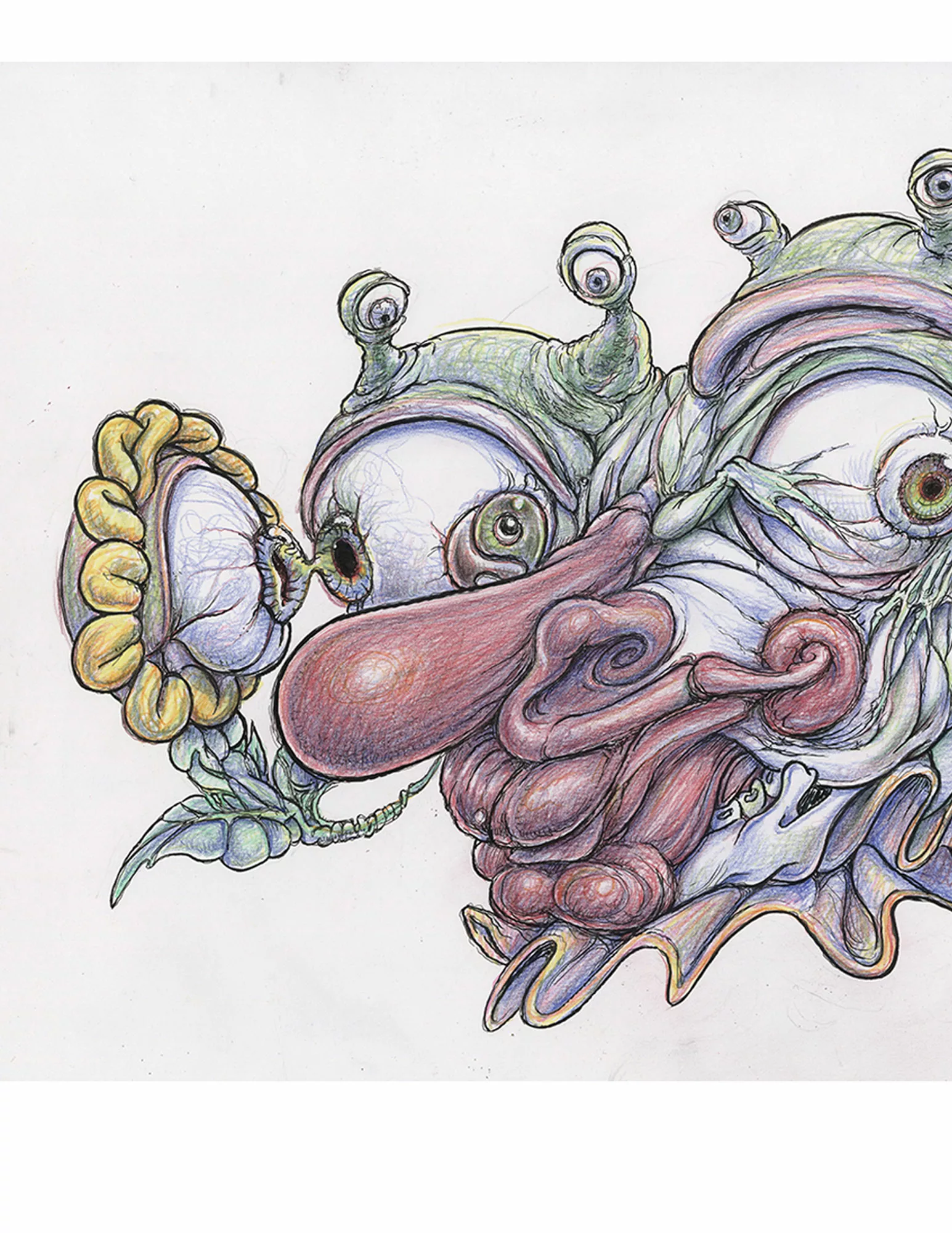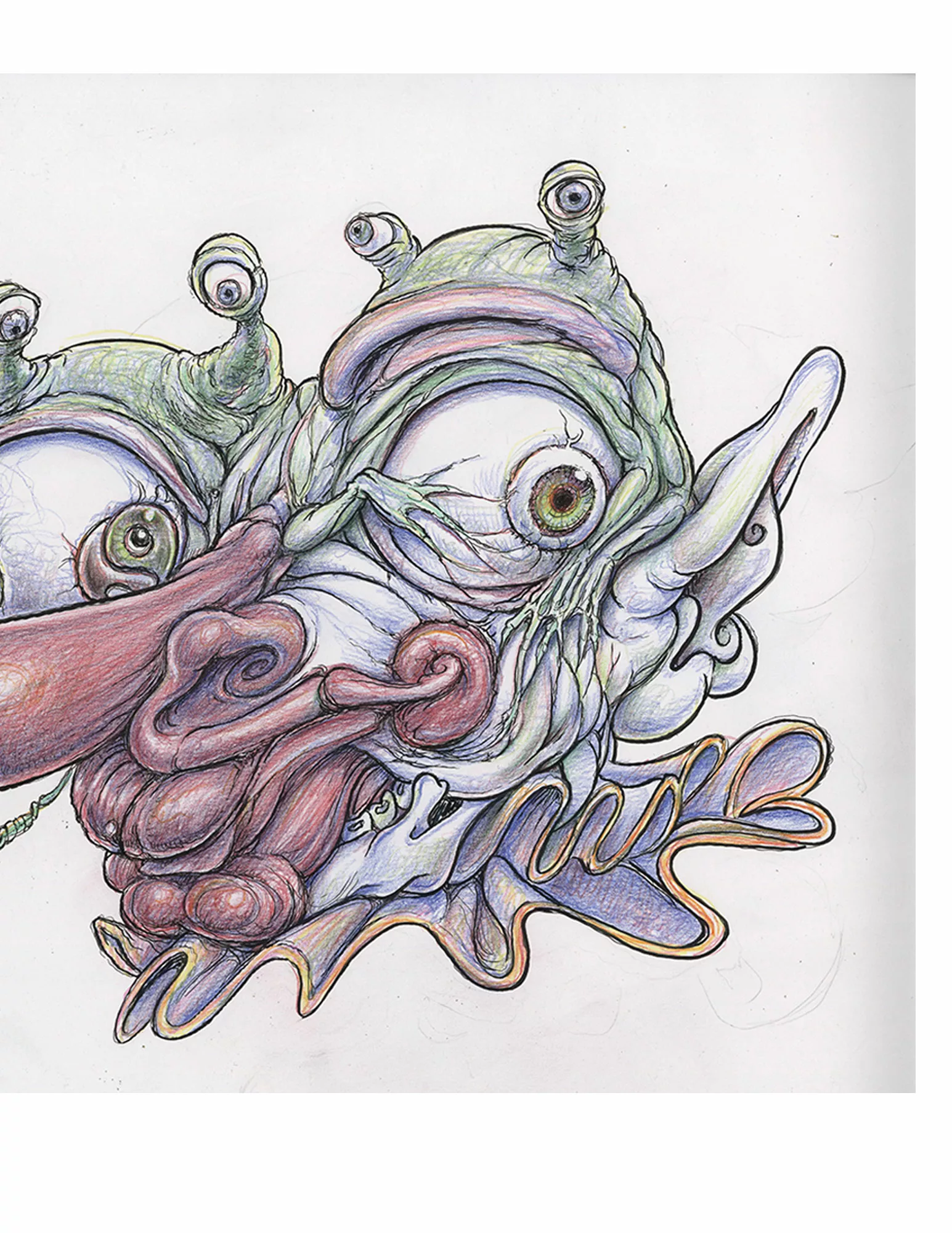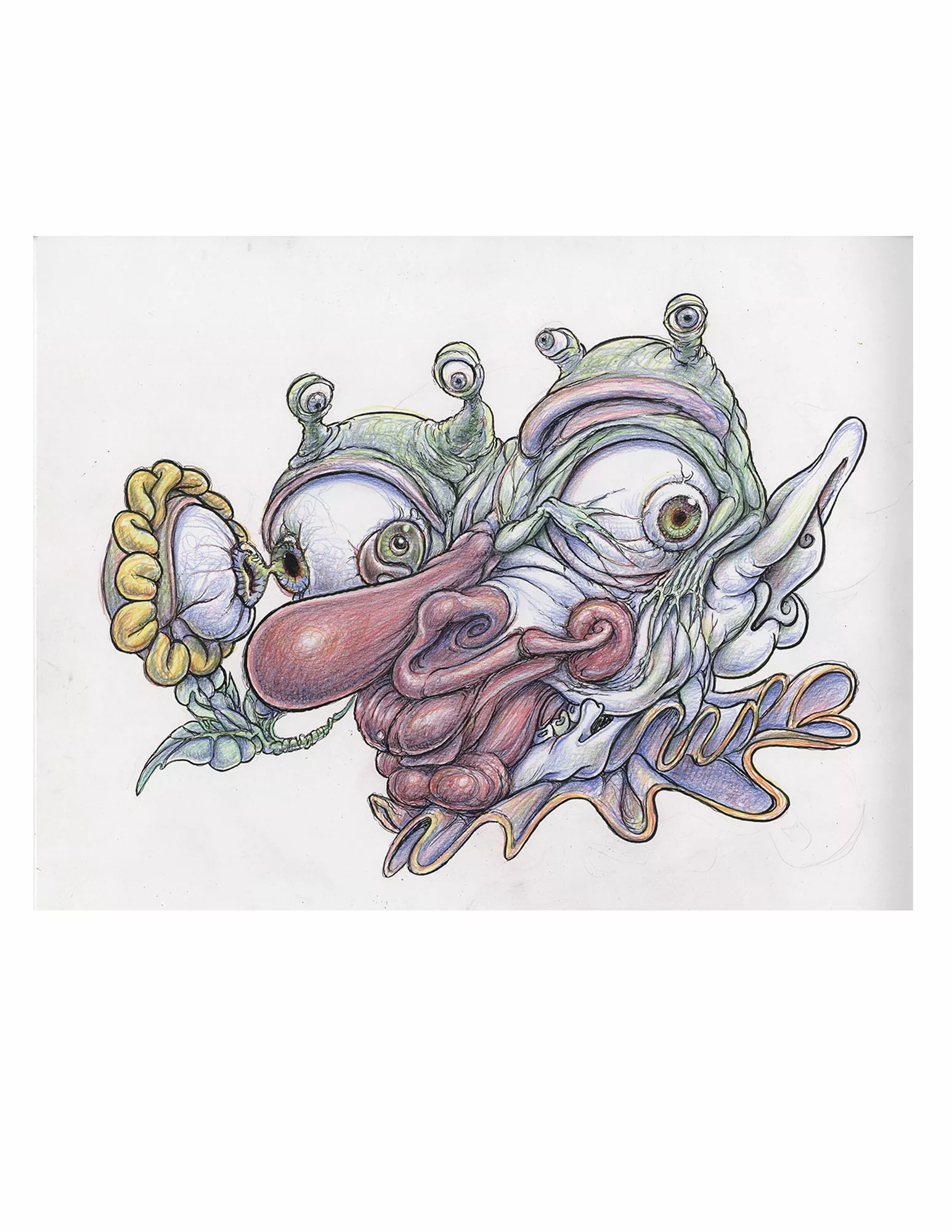 Each one of these drawings was created and used as keyframes designed to train A.I in English’s unique style for his Delusionville video series.