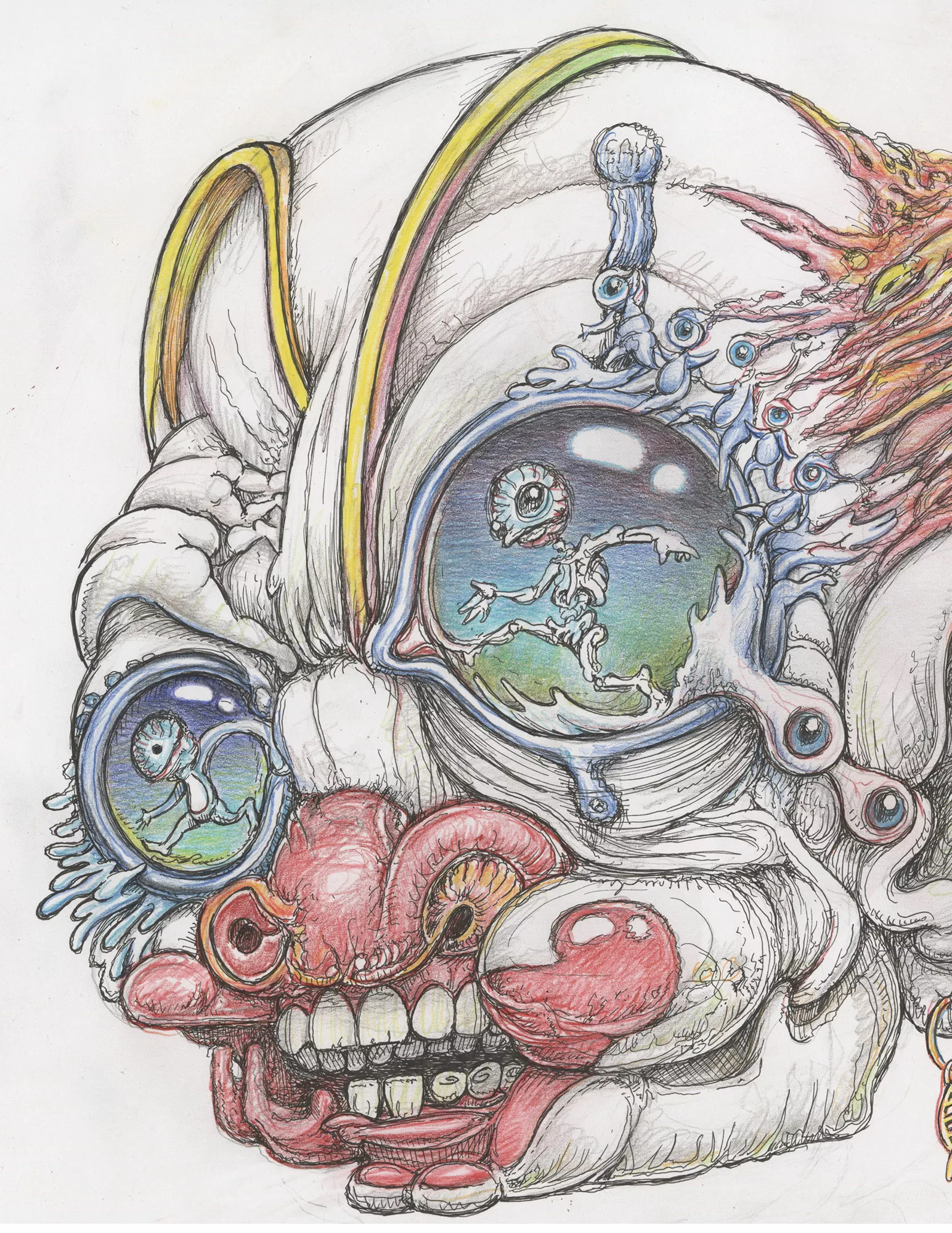 Each one of these drawings was created and used as keyframes designed to train A.I in English’s unique style for his Delusionville video series.