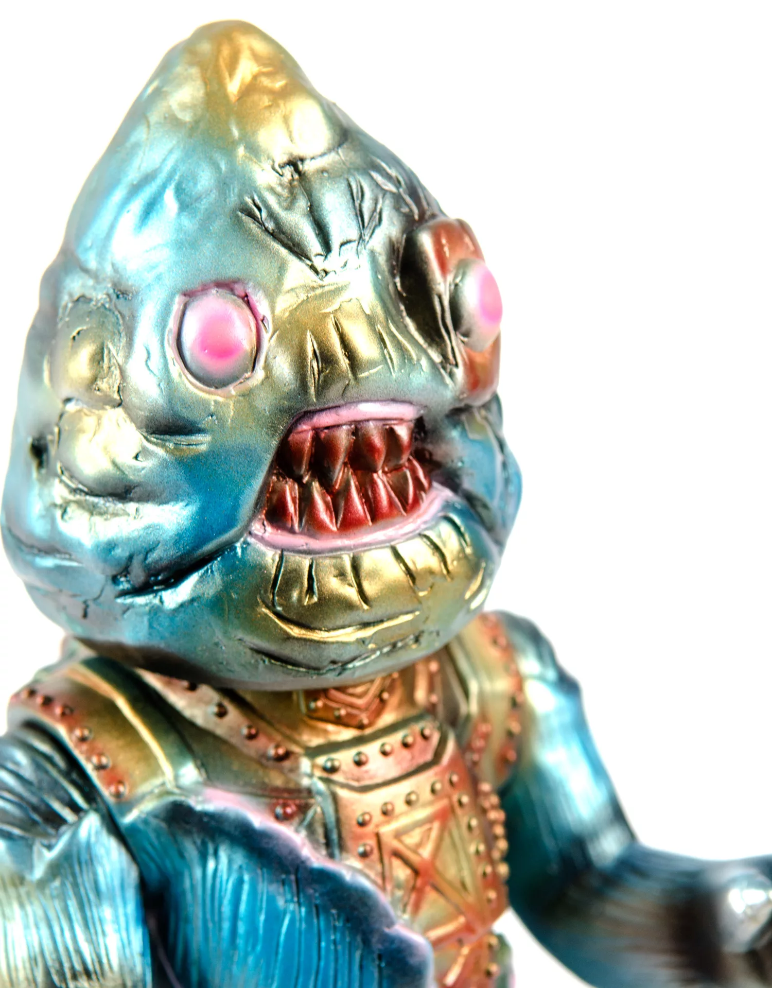 Slaughter Shark by Kaiju Light Society head on mecha Godzilla body. Hand Painted by MonsterFootCreations with a matt finish.