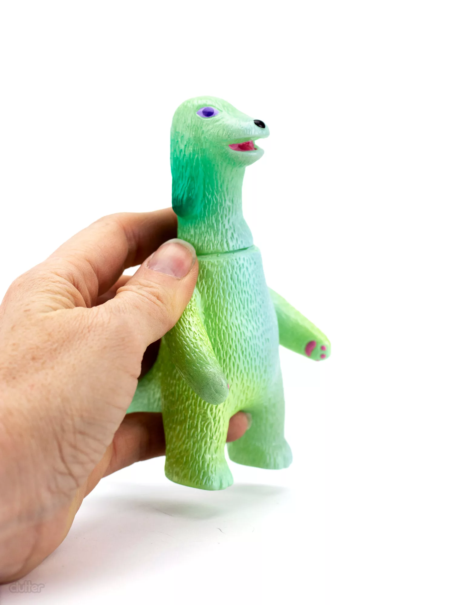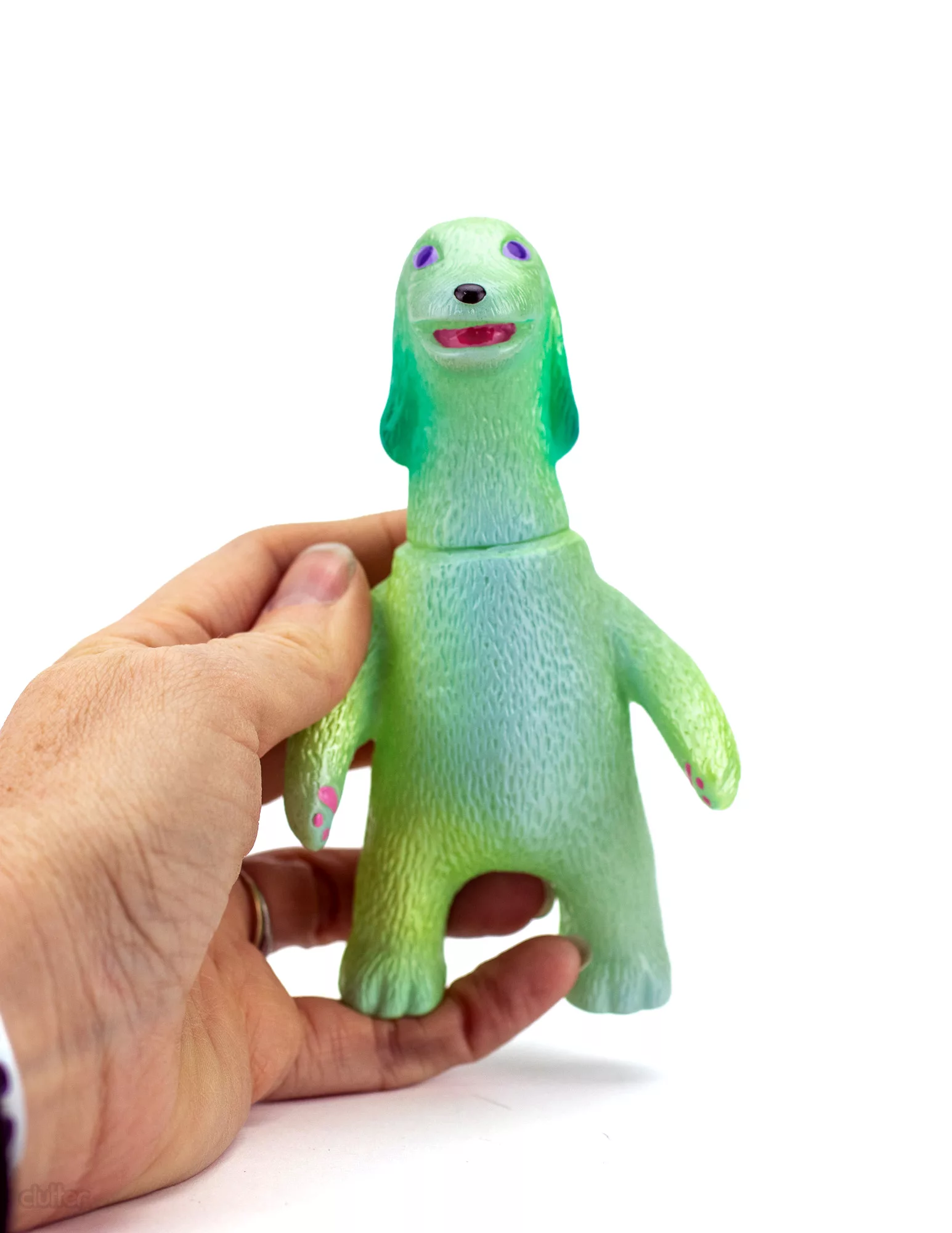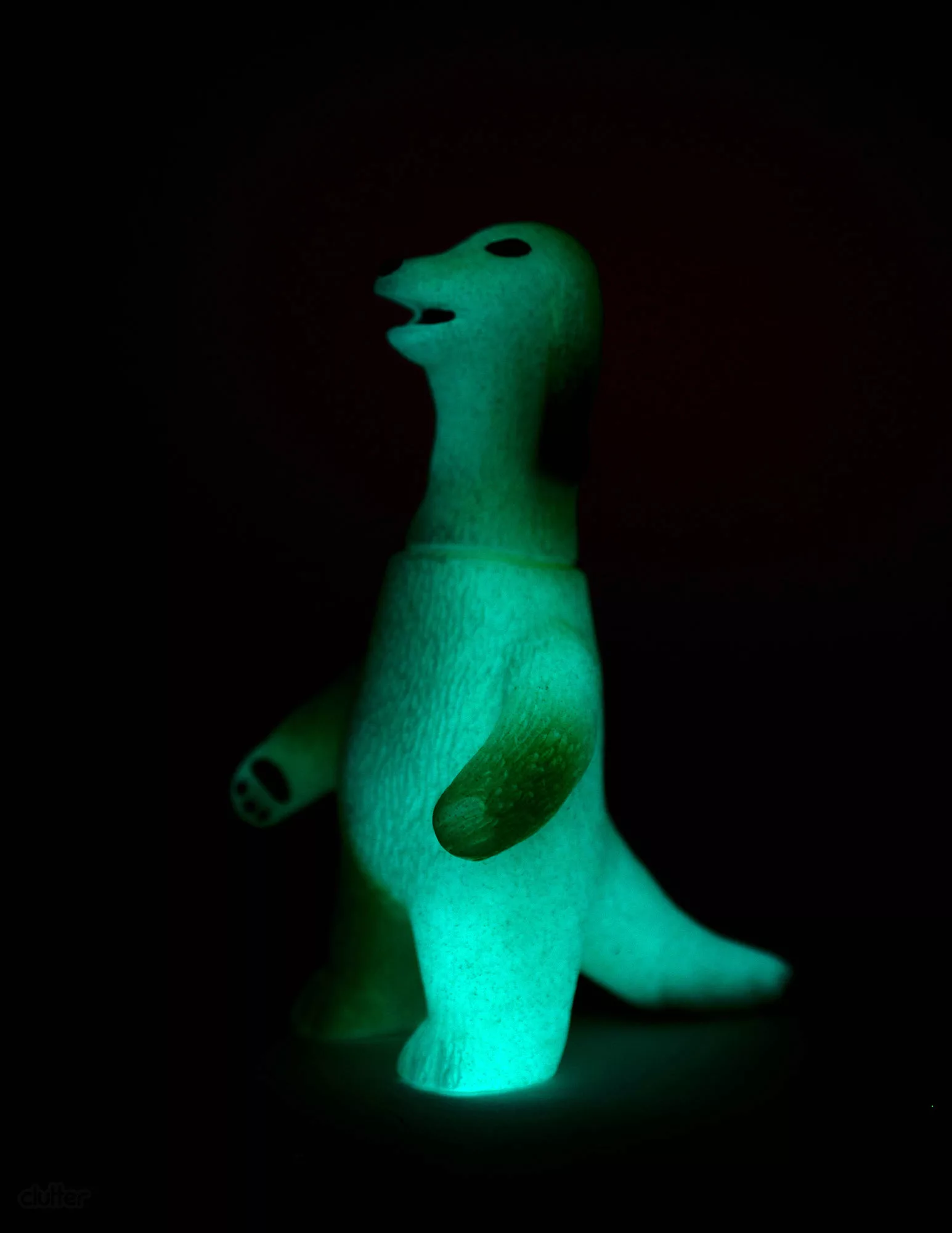 Olivia! Woof! Is she a bad dog? No.. not really. GID Glitter Green vinyl with asymmetrical metallic green spray for fun glow silhouette.
