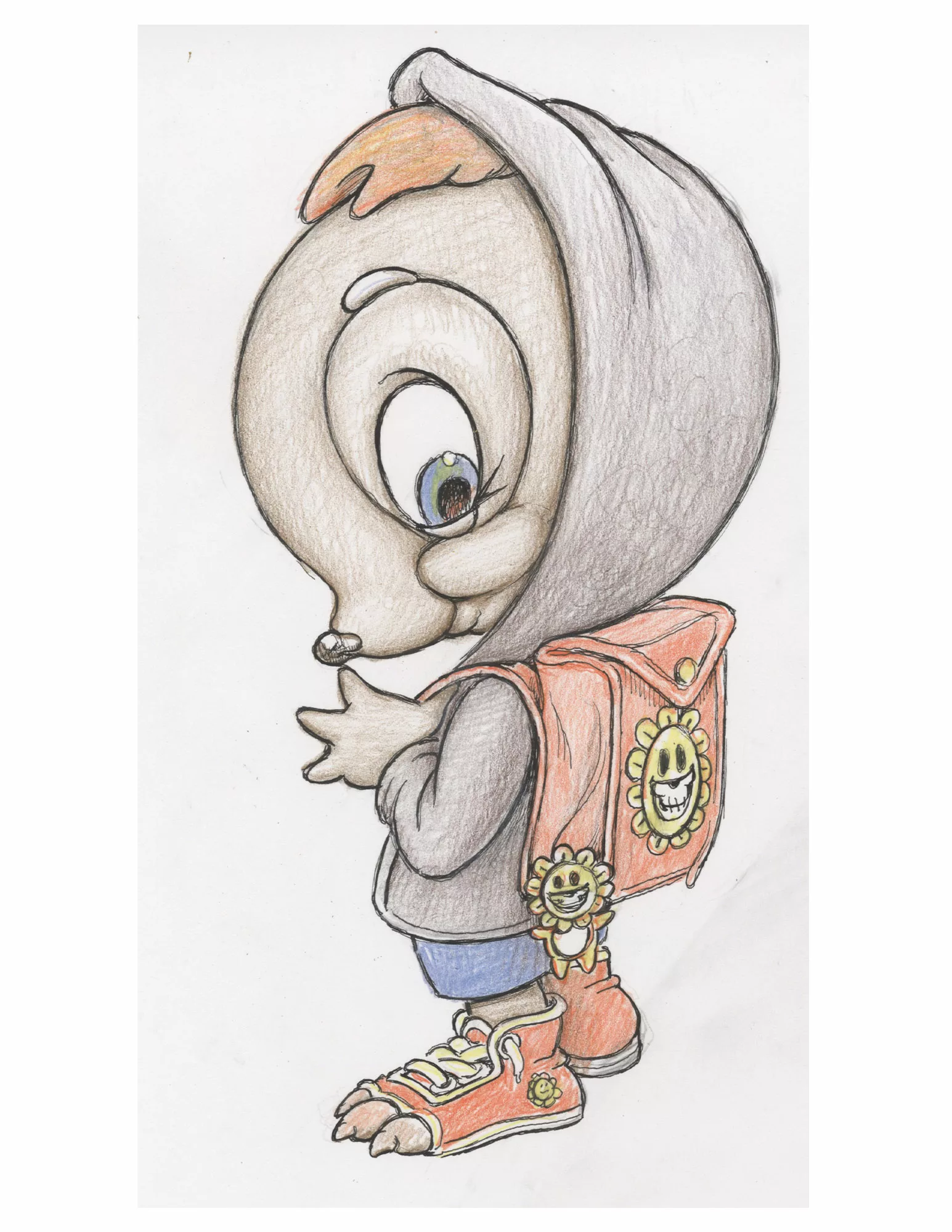 Original pencil, ink, and crayon drawing by Ron English