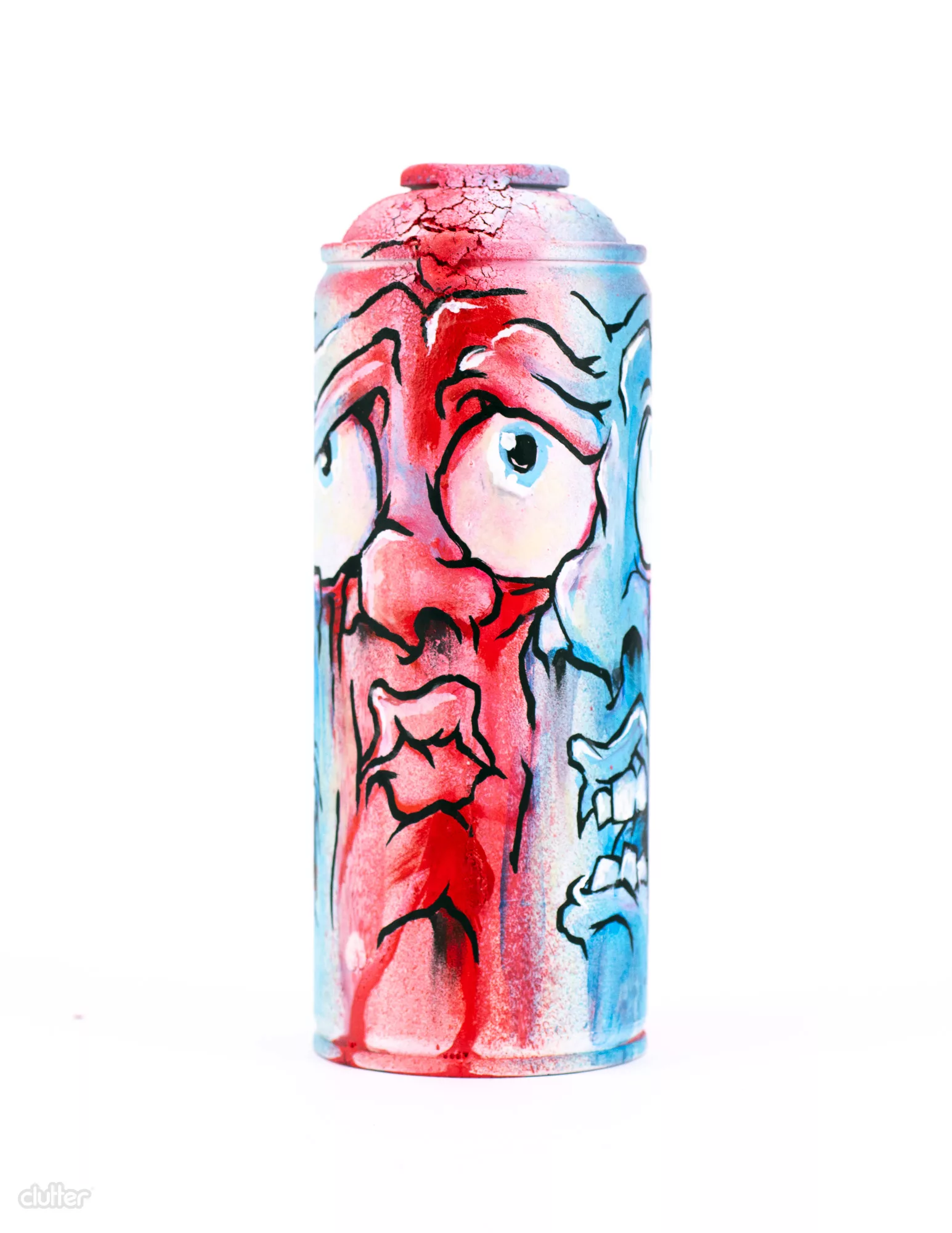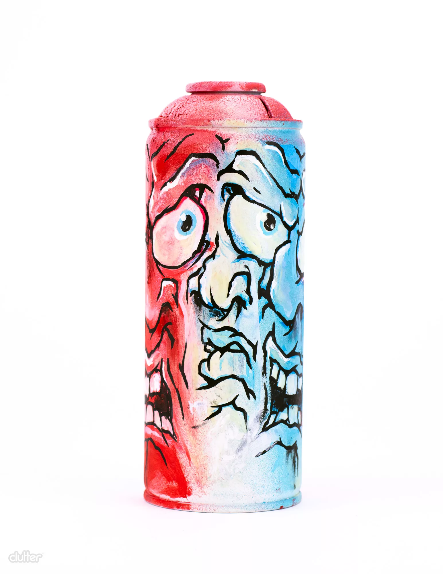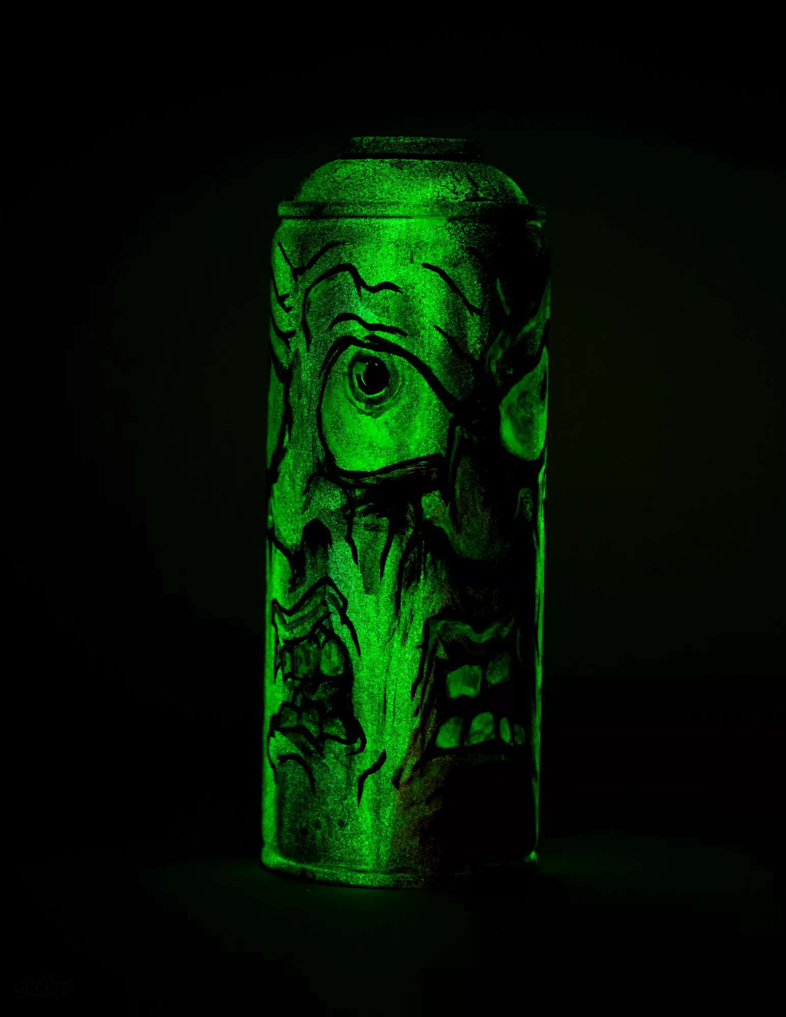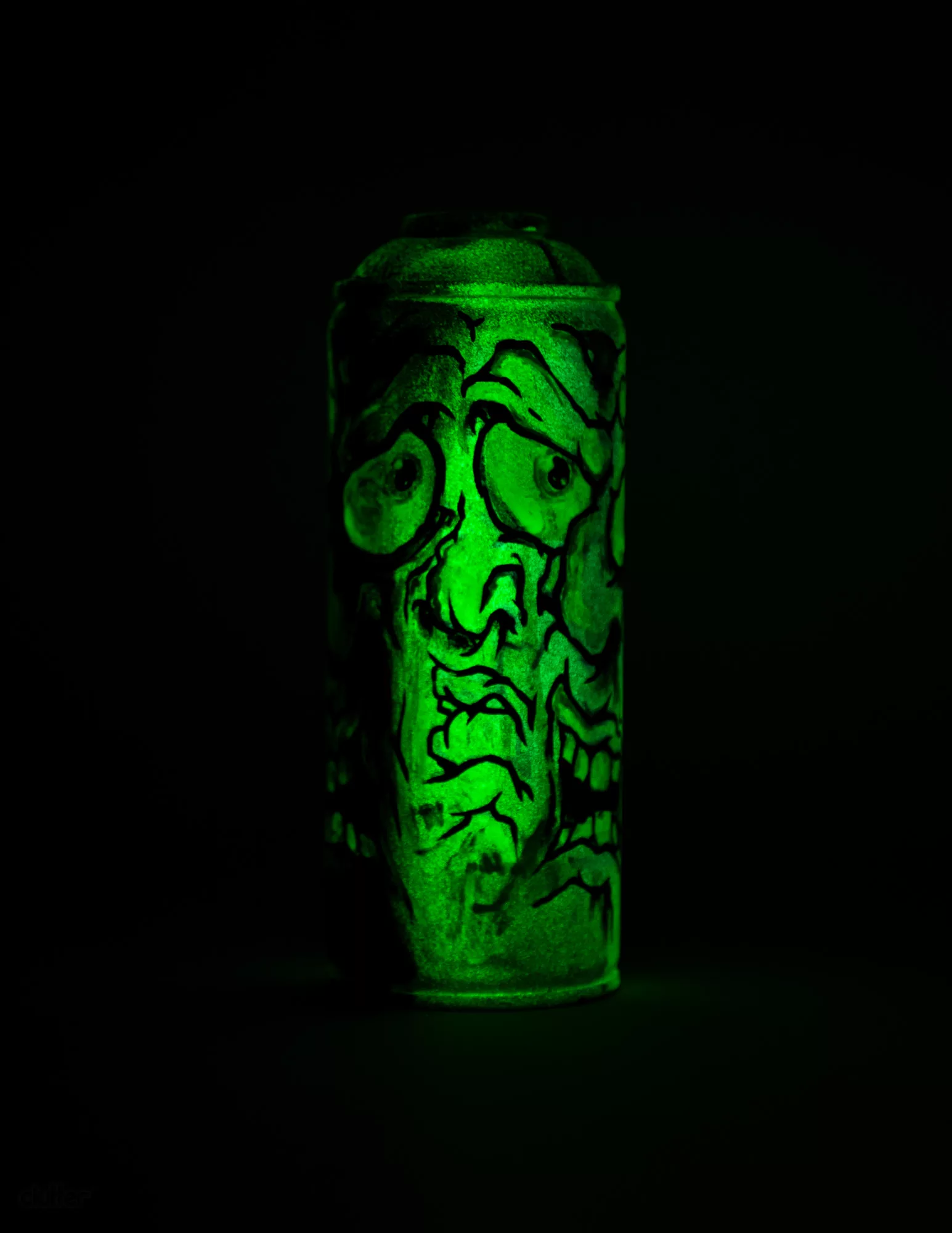 Spraypaint GID paint and paint marker on defunct spray paint can