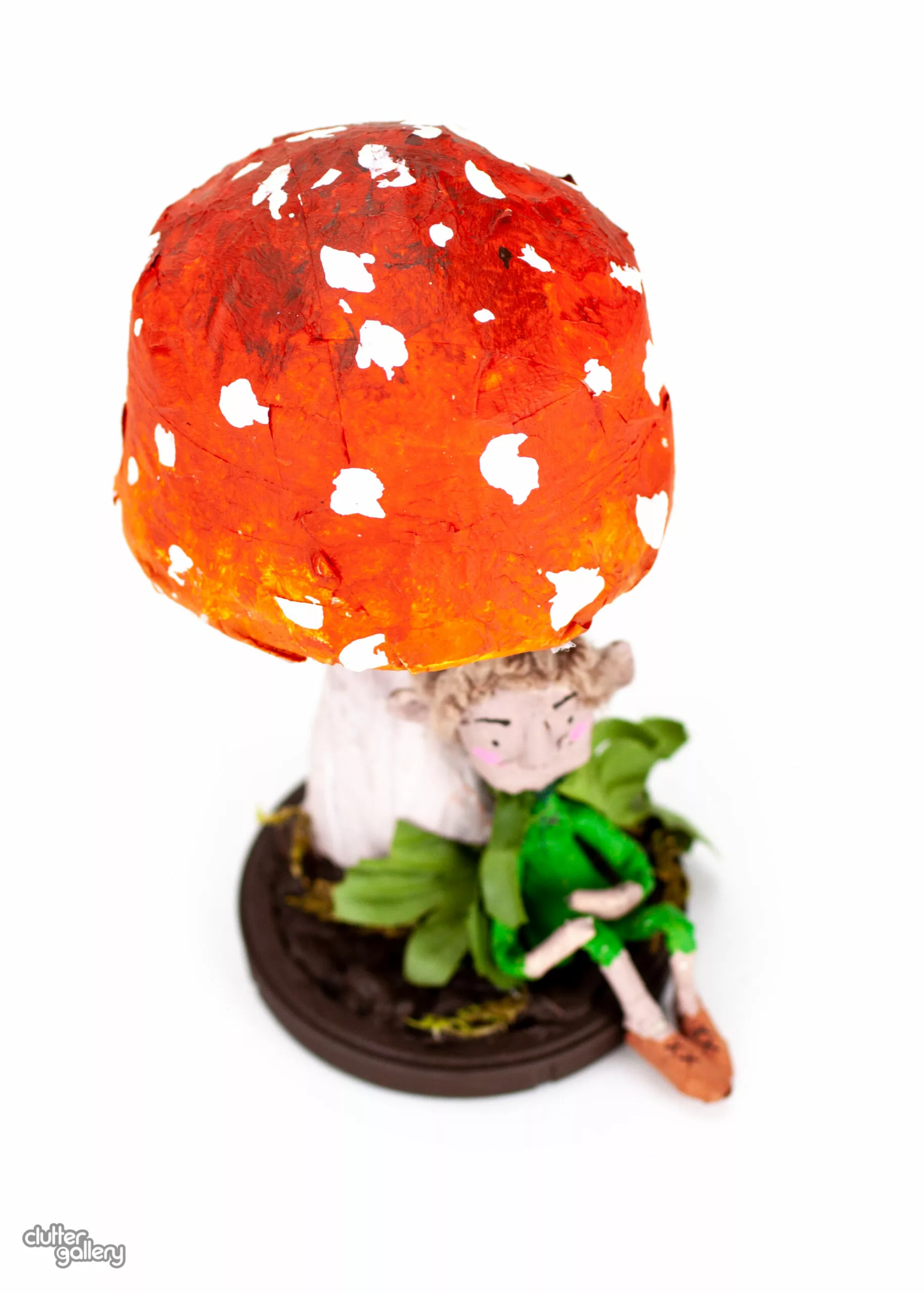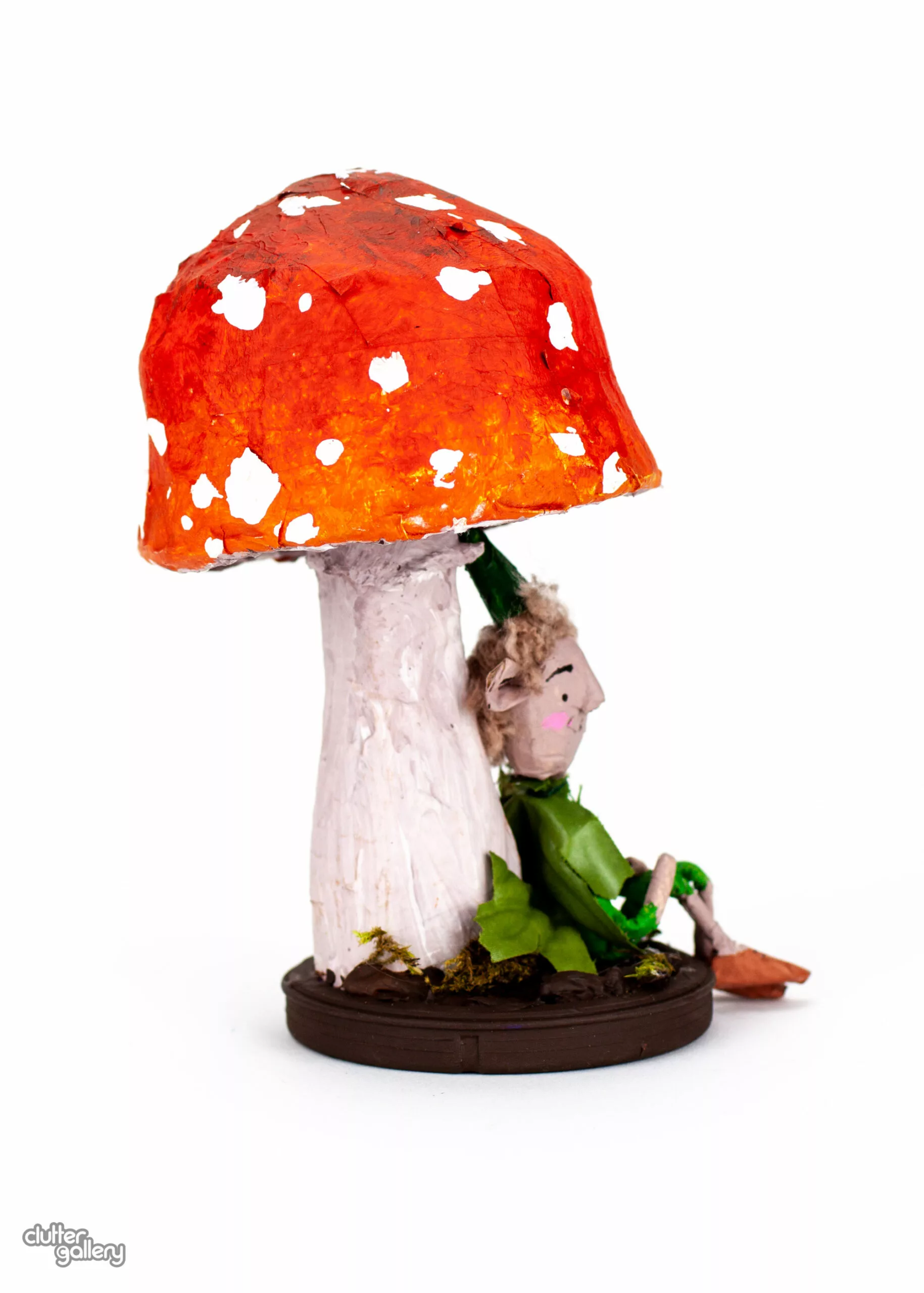 A one of a kind art piece featuring one of Jay Stelling’s unique, handcrafted elf art dolls. Made in North Yorkshire specifically for Clutter Gallery. Papier mache and mixed media measuring 10cm wide x 16cm high x 12cm deep