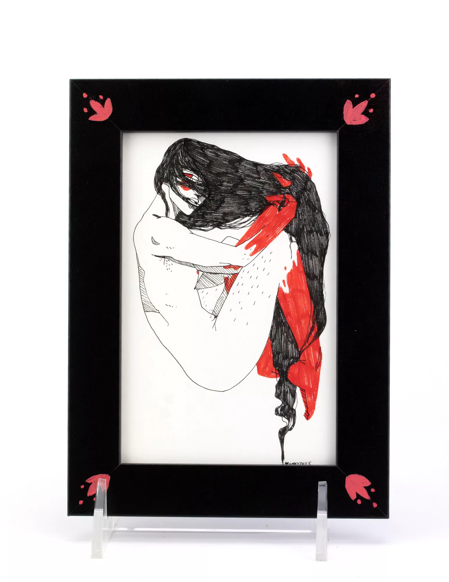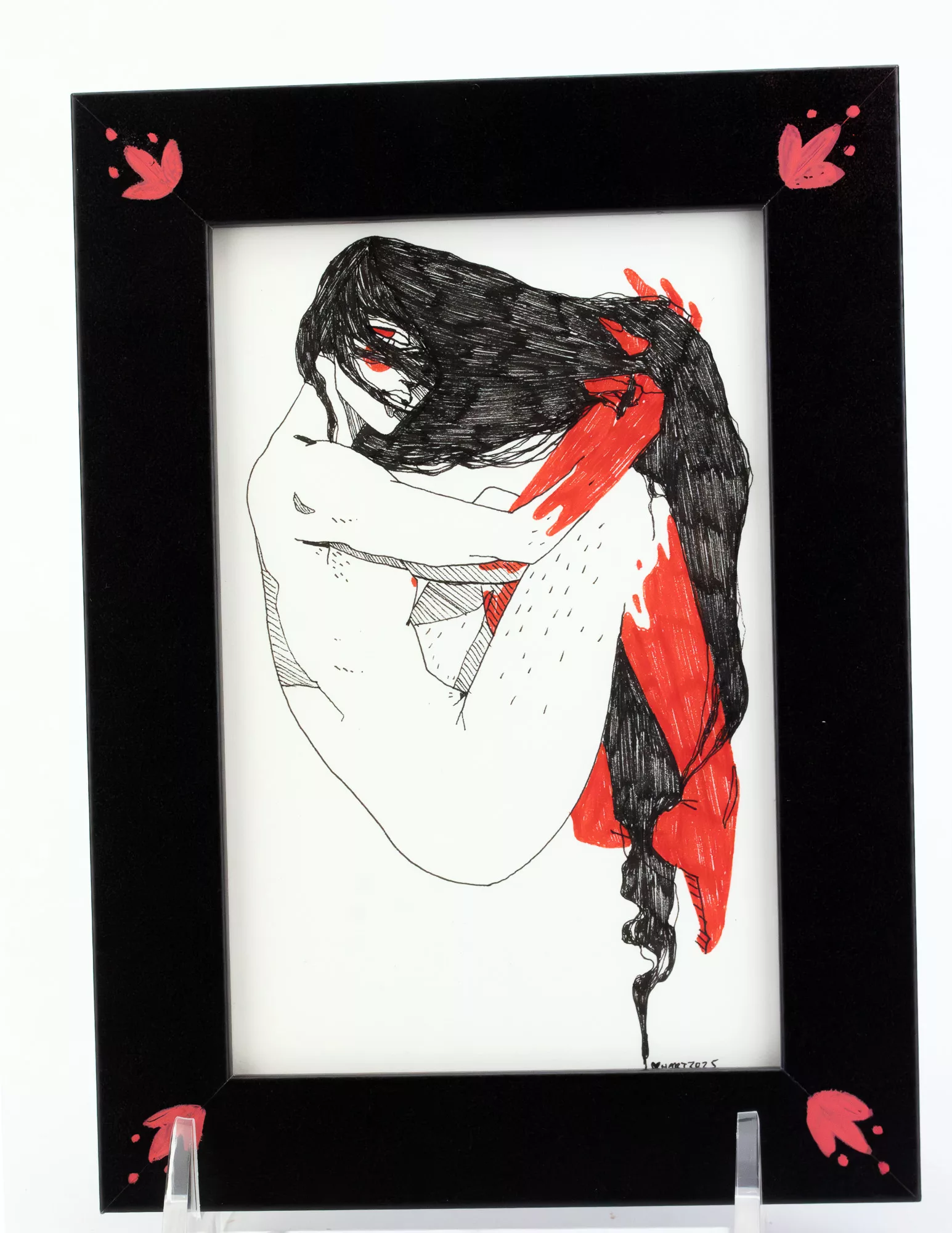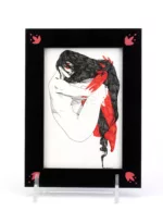 4×6 framed original ink drawings. Micron pen black and red
