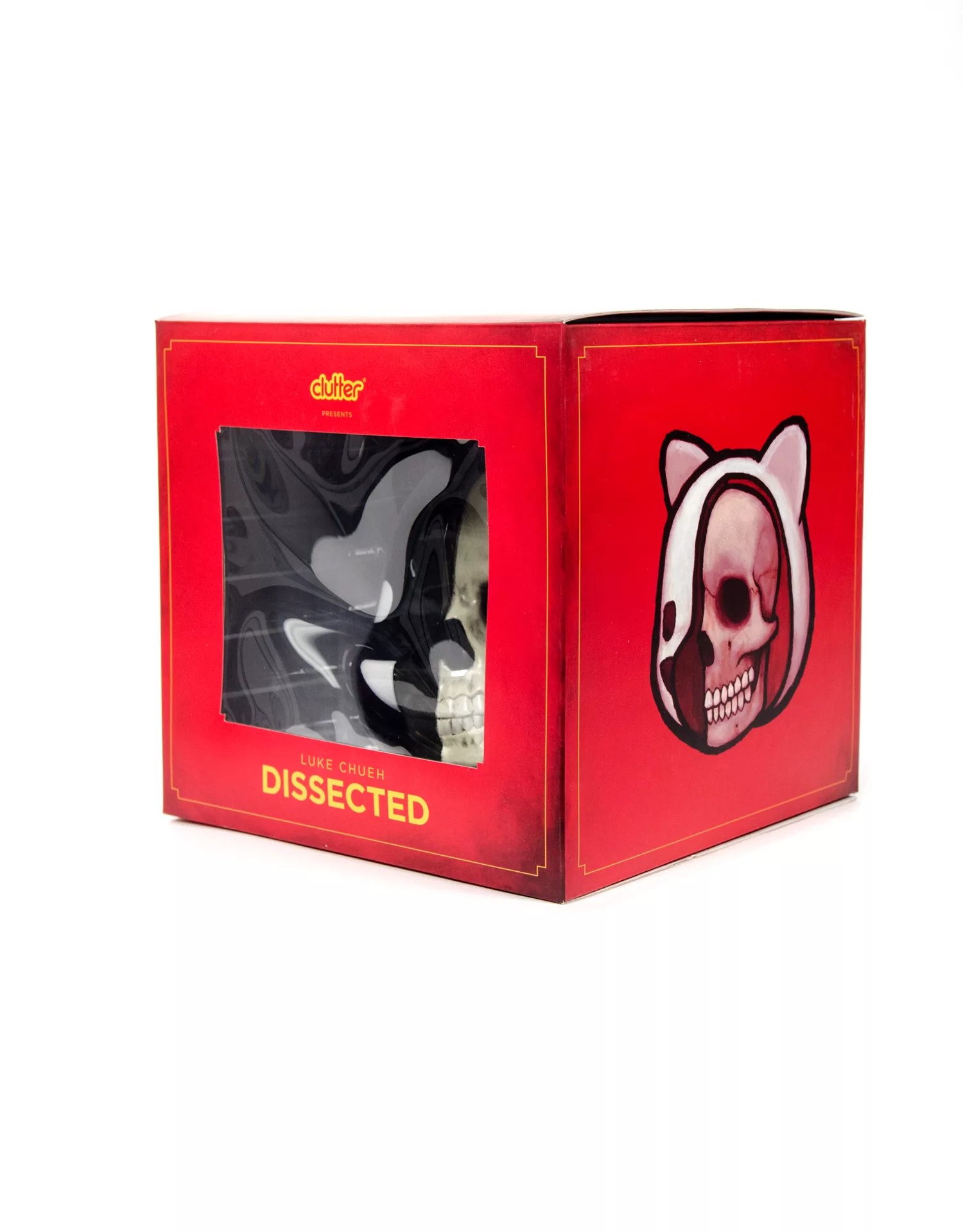Luke Chueh and Clutter have teamed up to bring to you the latest limited colorway of Luke Chueh’s Black and Bone Dissected Bear Head! This Five Points Fest Exclusive has a sleek black exterior, with white eye and nose, and internal bones. Comes complete with a signature red blood pool.