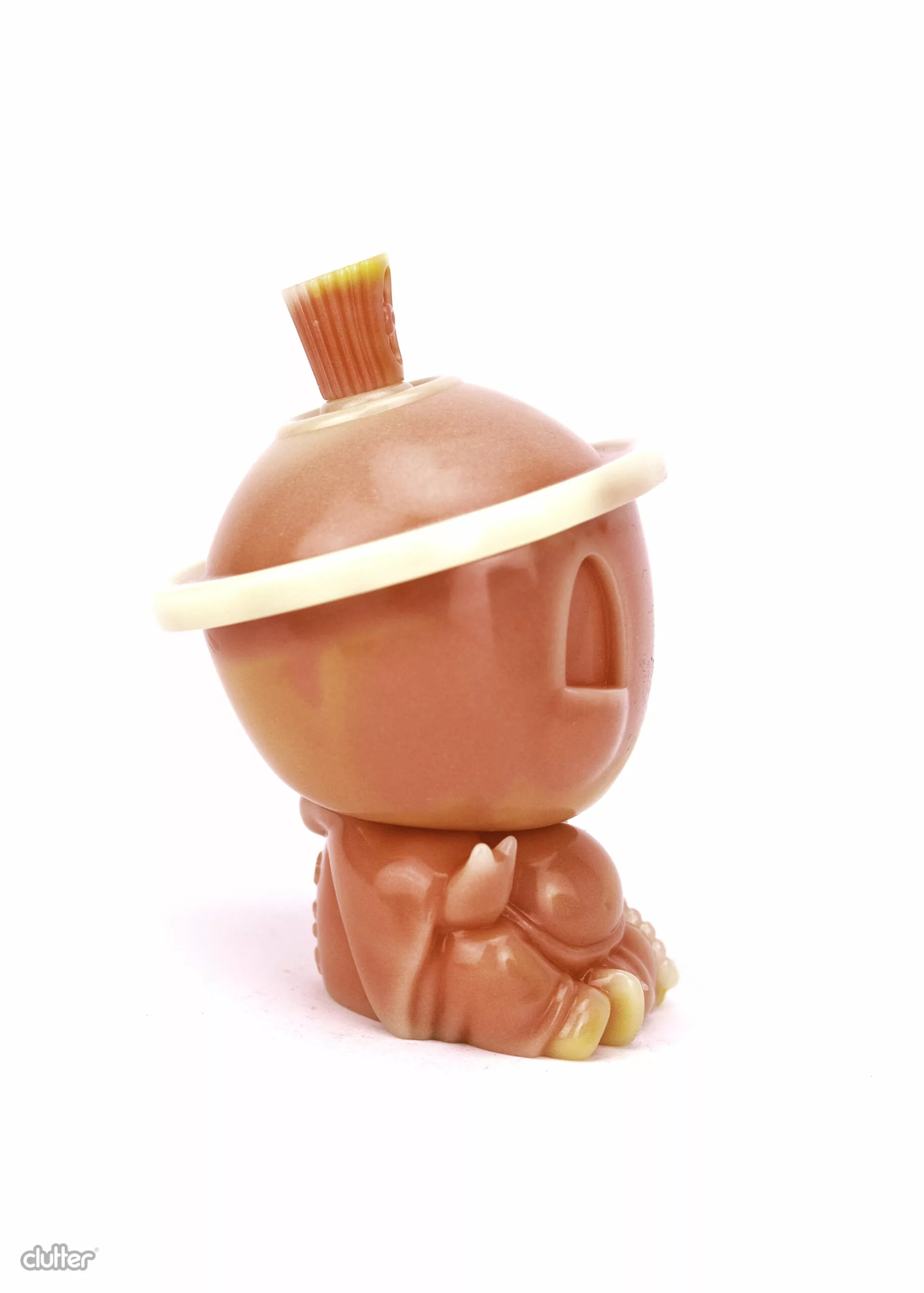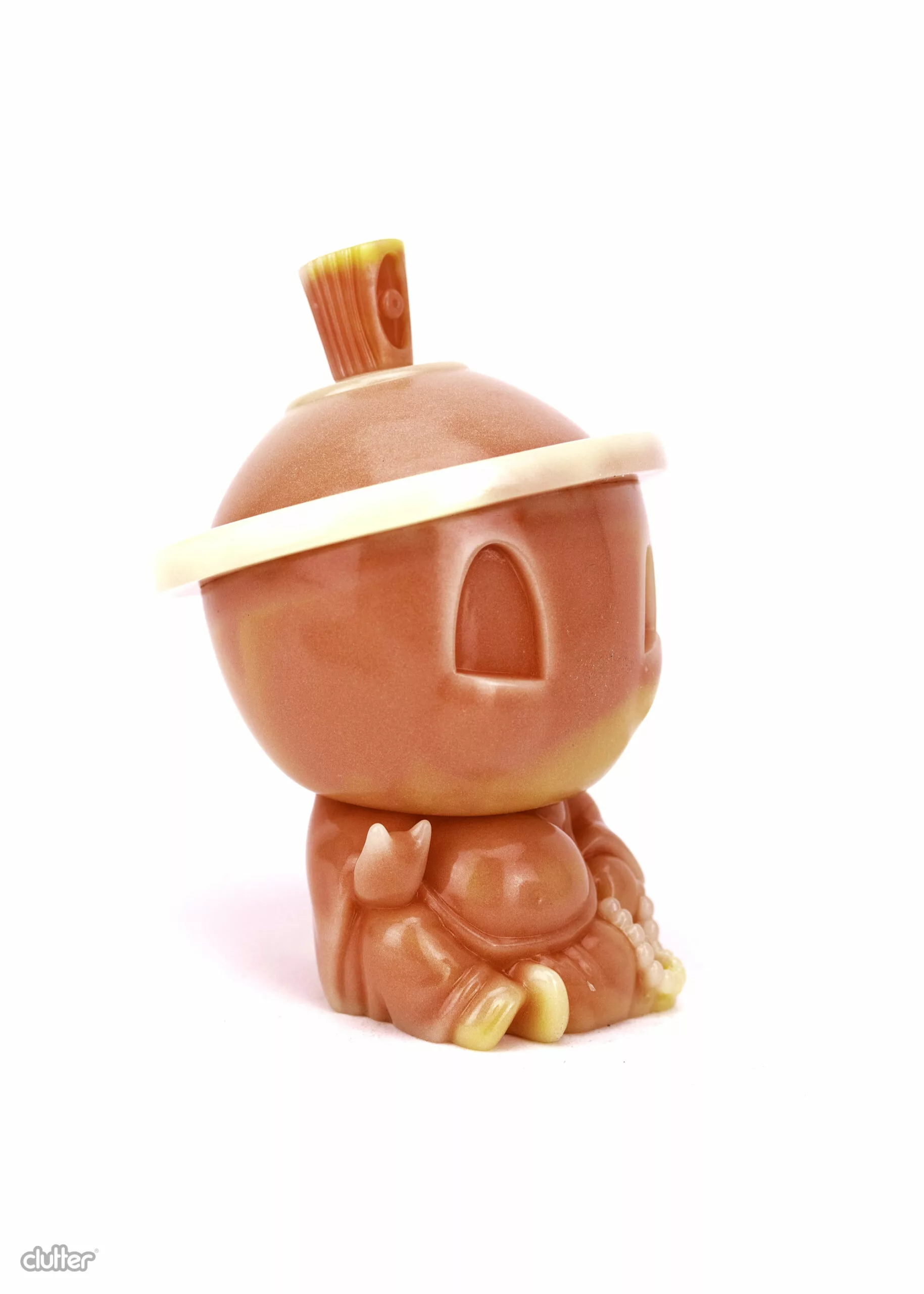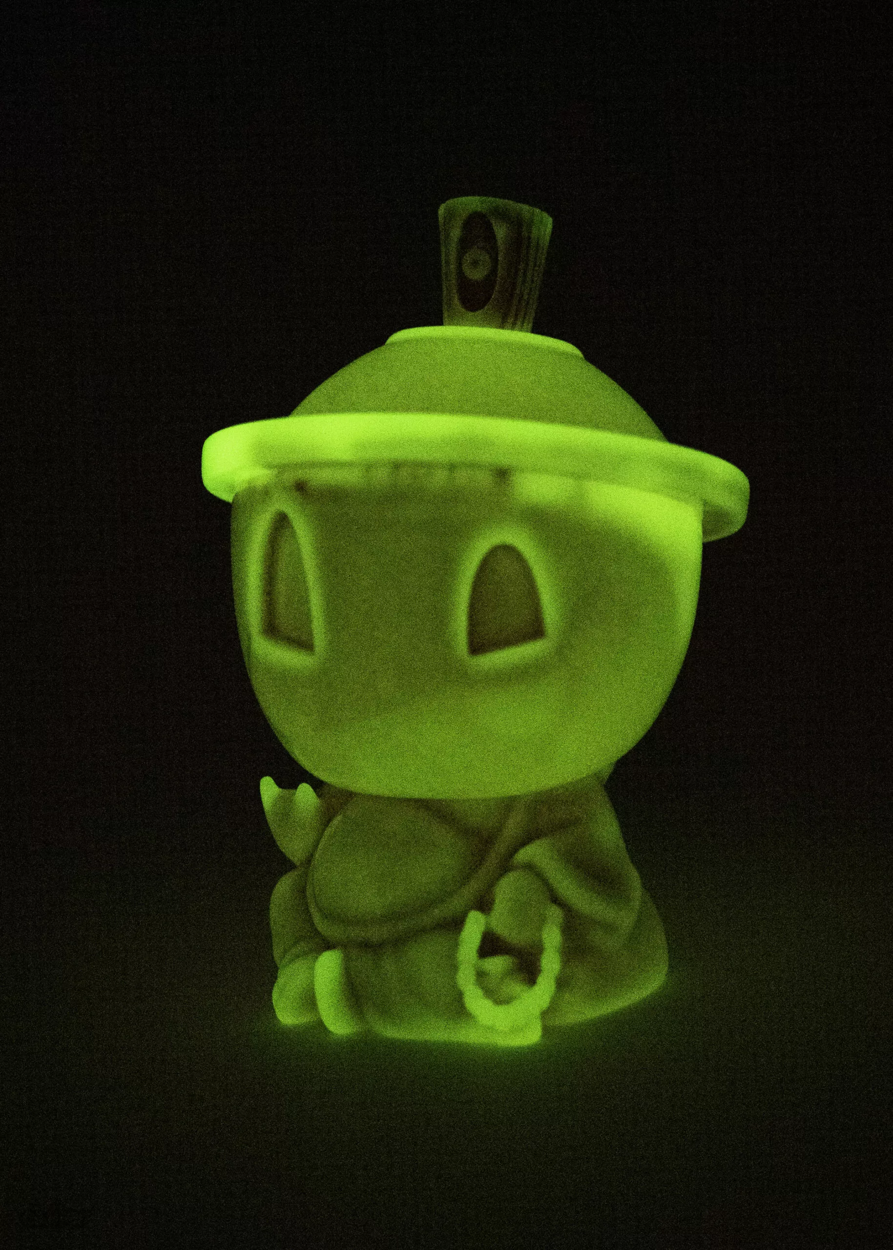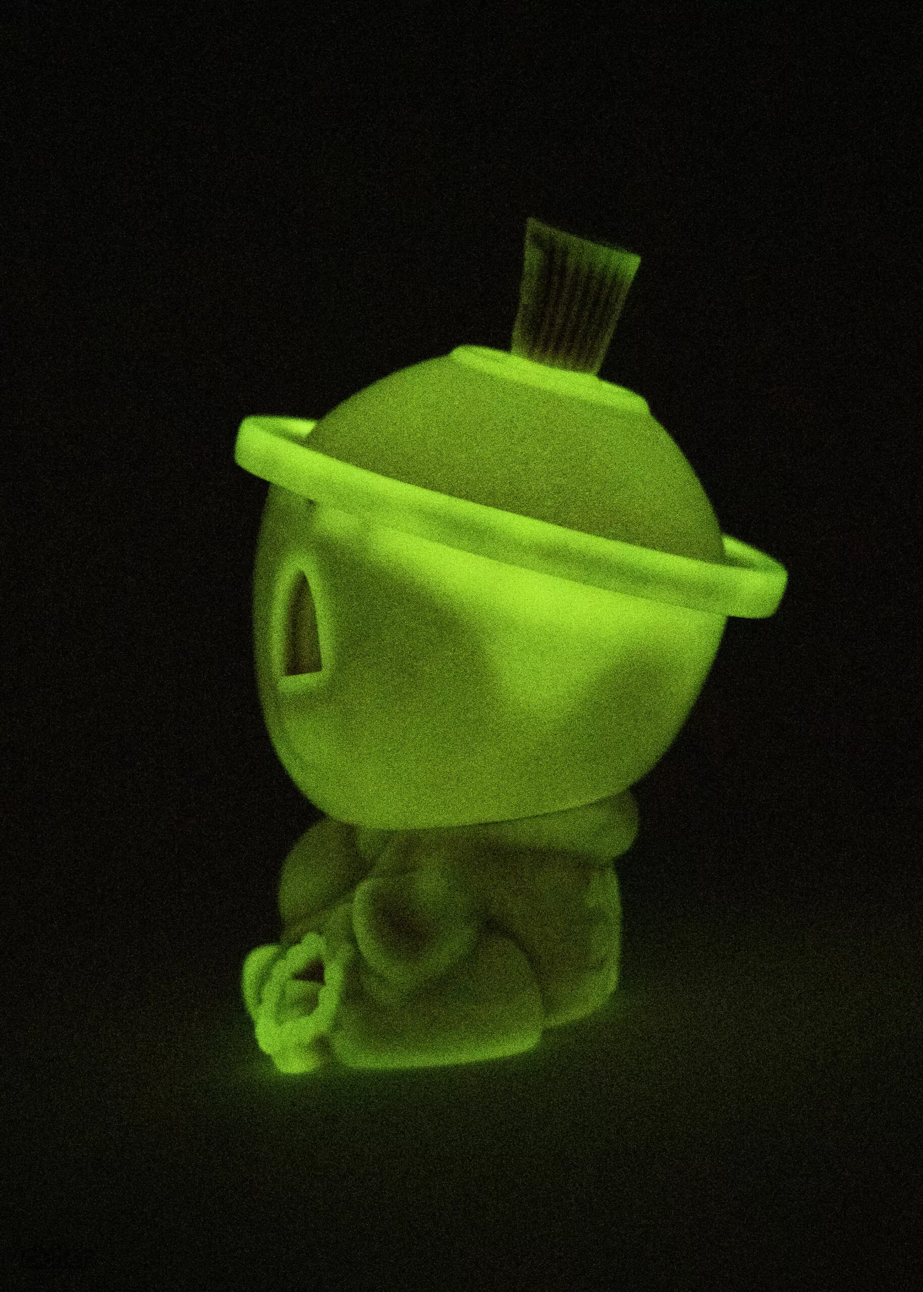 The Blessbots are lovingly slush-cast in Red and GID soft-vinyl to create amazing marbled effects of pink and yellow colors, which means every single Blessbot is a unique art toy with its own mystery of swirls and details. Not ONLY that, they GLOW-IN-THE-DARK!!!
