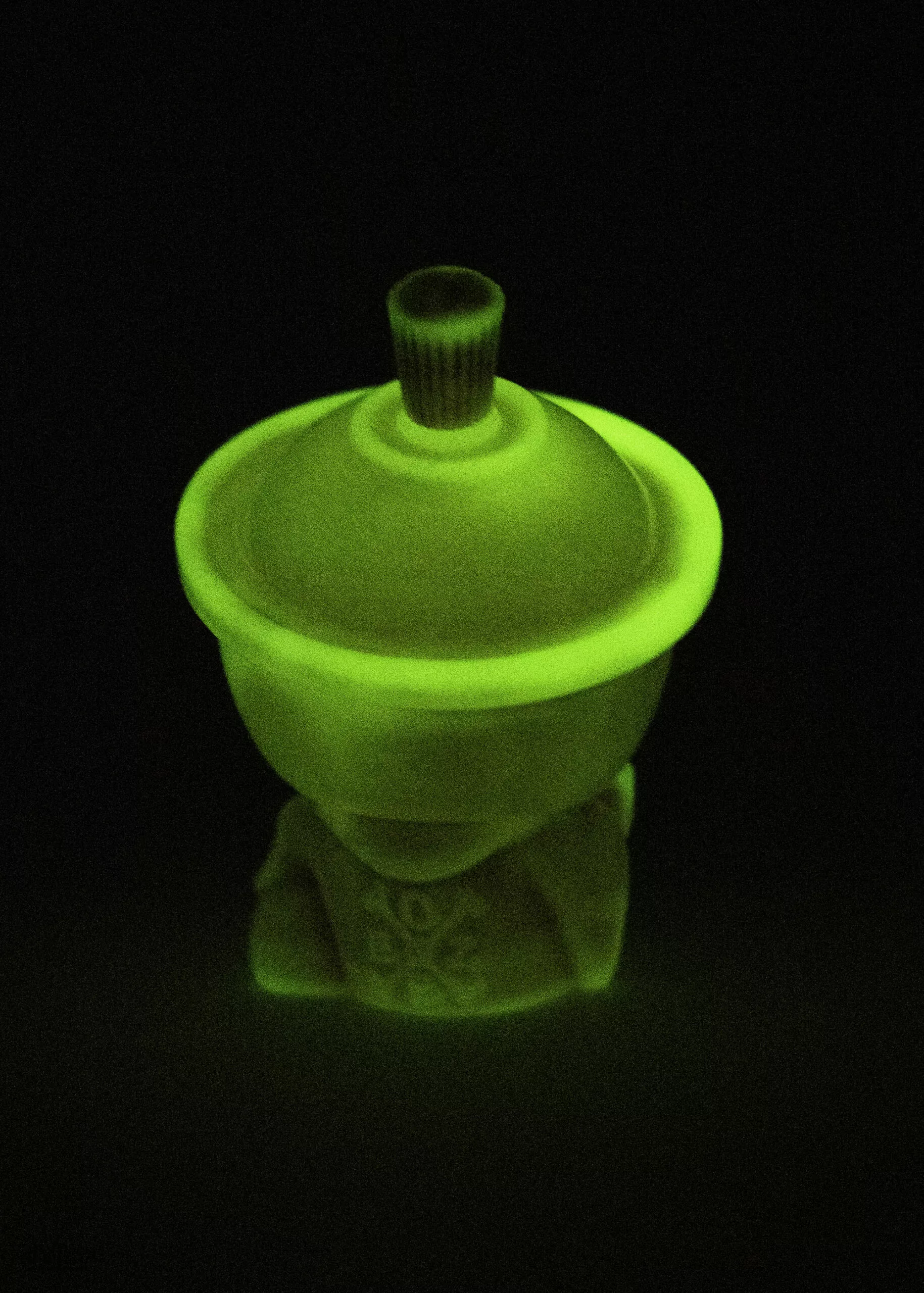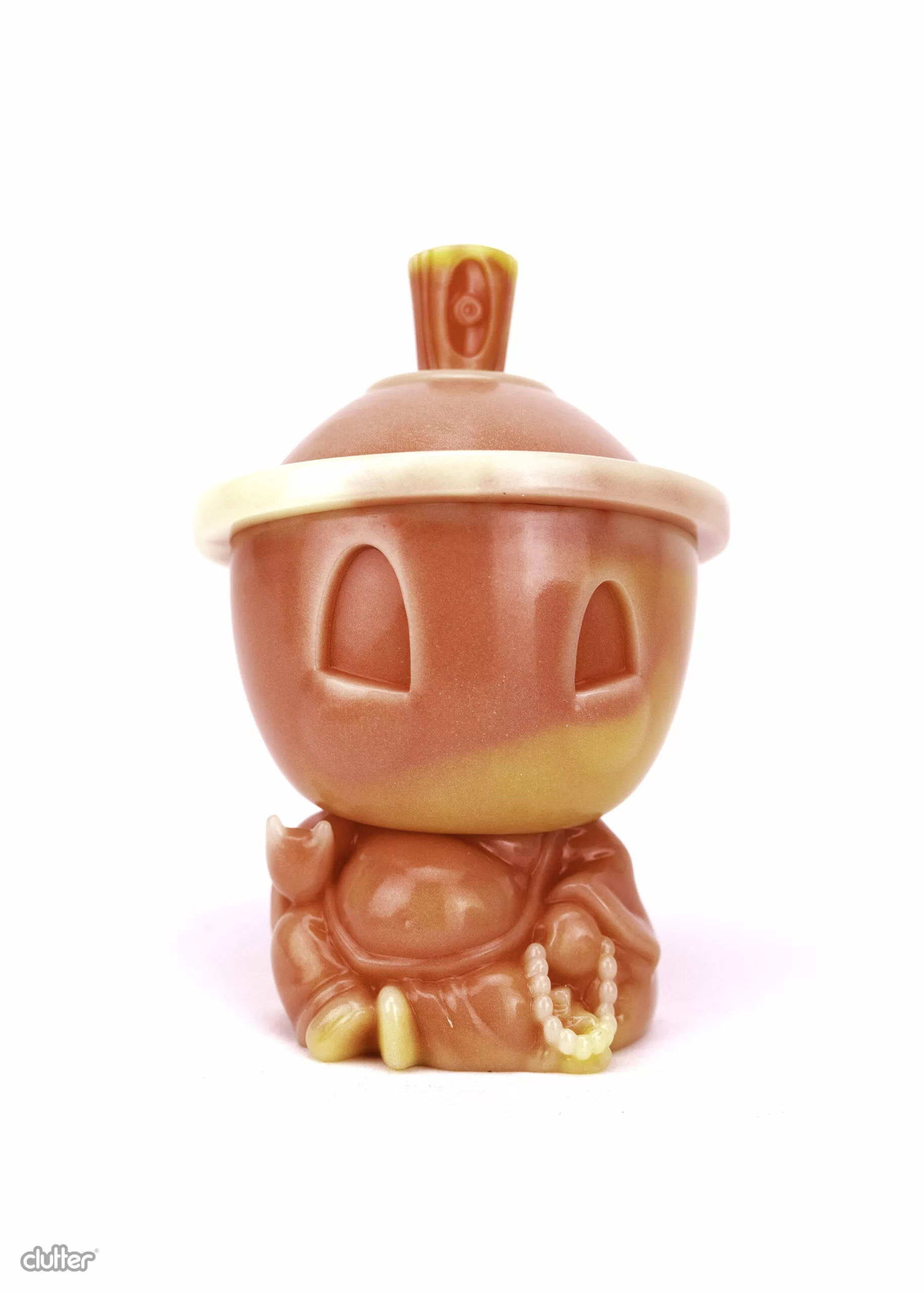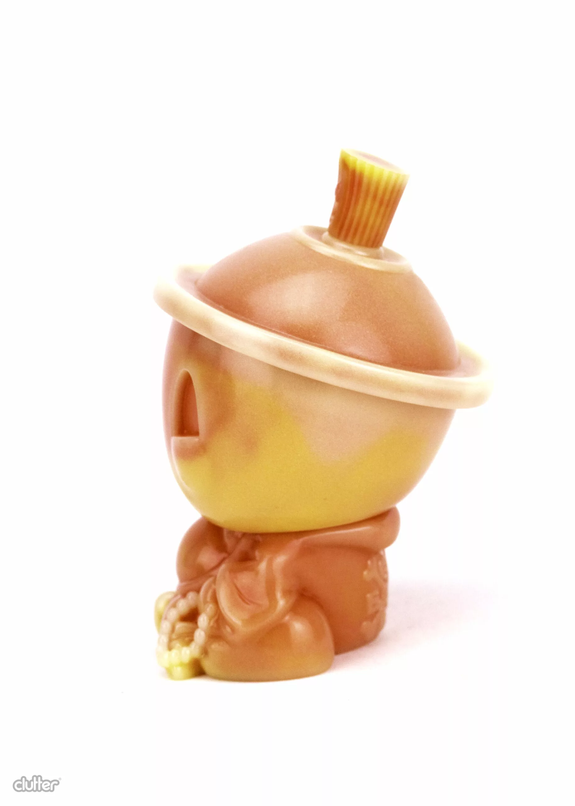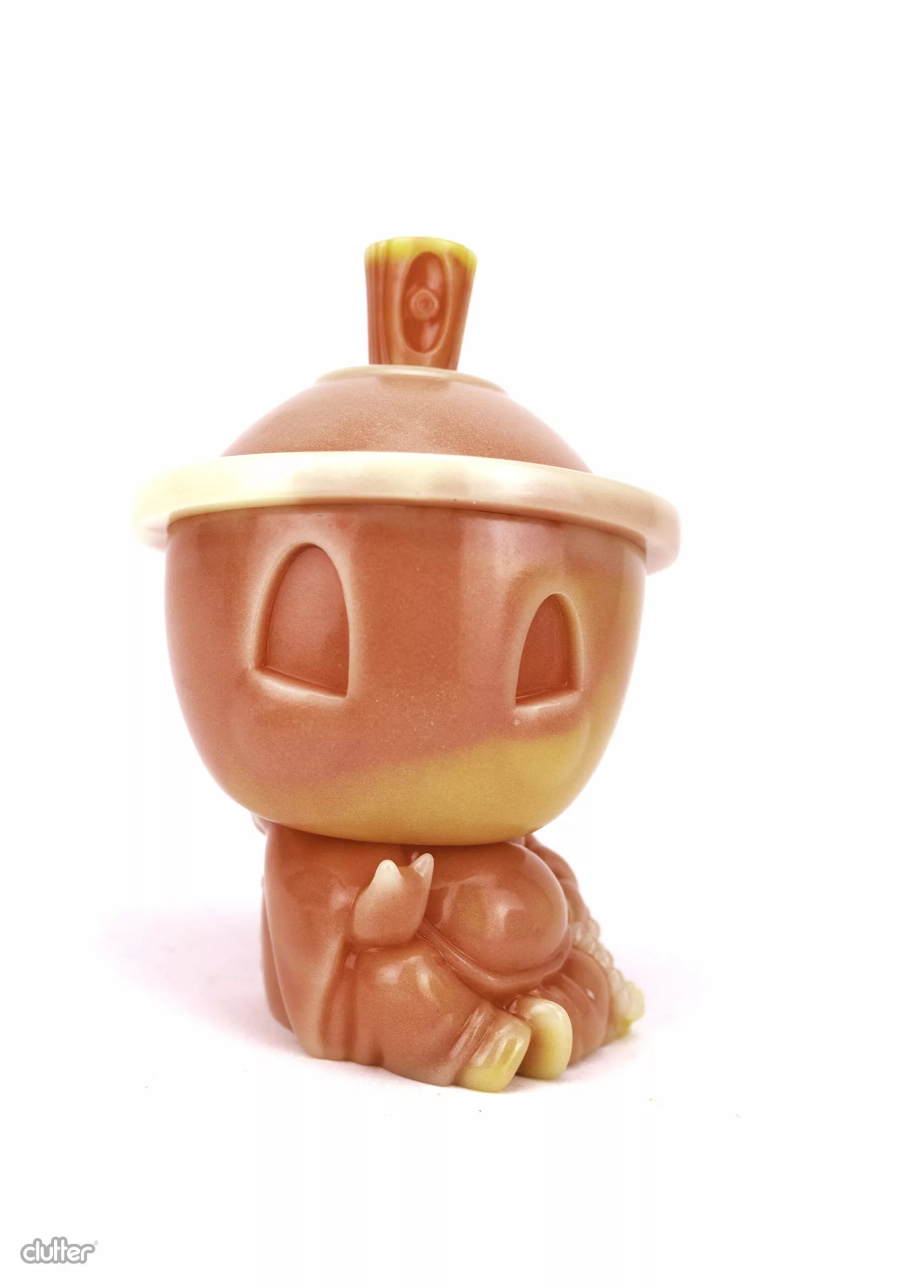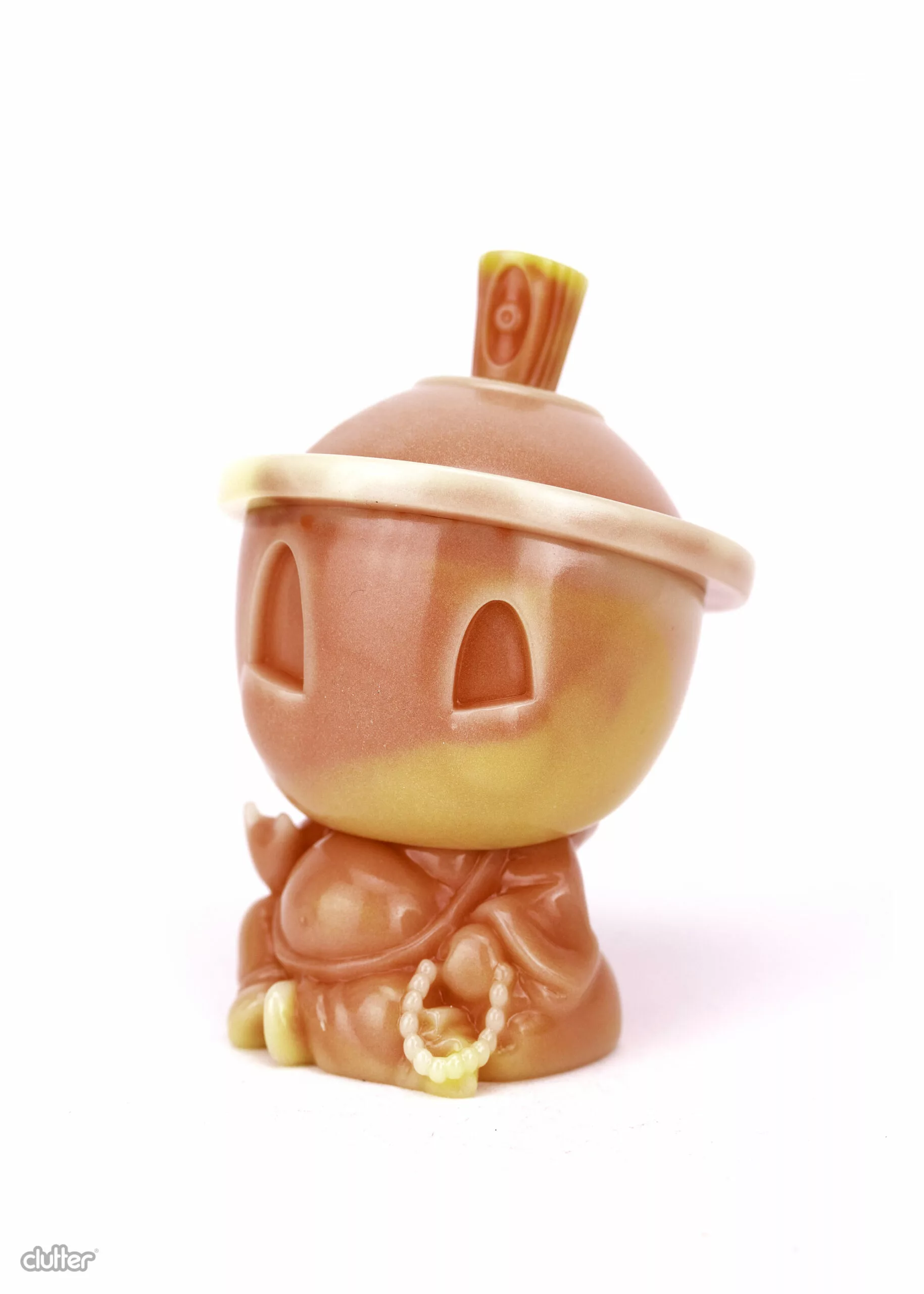 The Blessbots are lovingly slush-cast in Red and GID soft-vinyl to create amazing marbled effects of pink and yellow colors, which means every single Blessbot is a unique art toy with its own mystery of swirls and details. Not ONLY that, they GLOW-IN-THE-DARK!!!