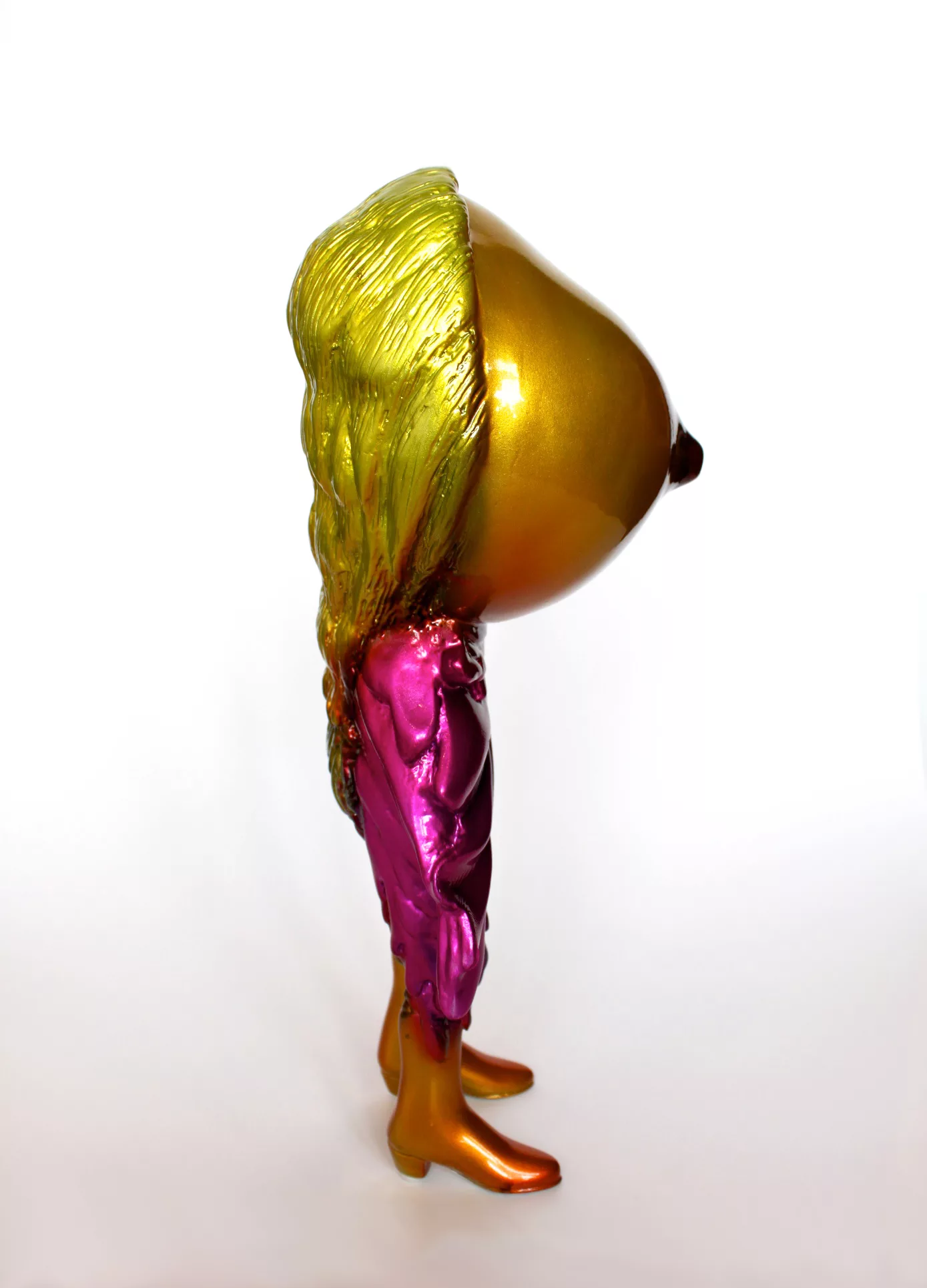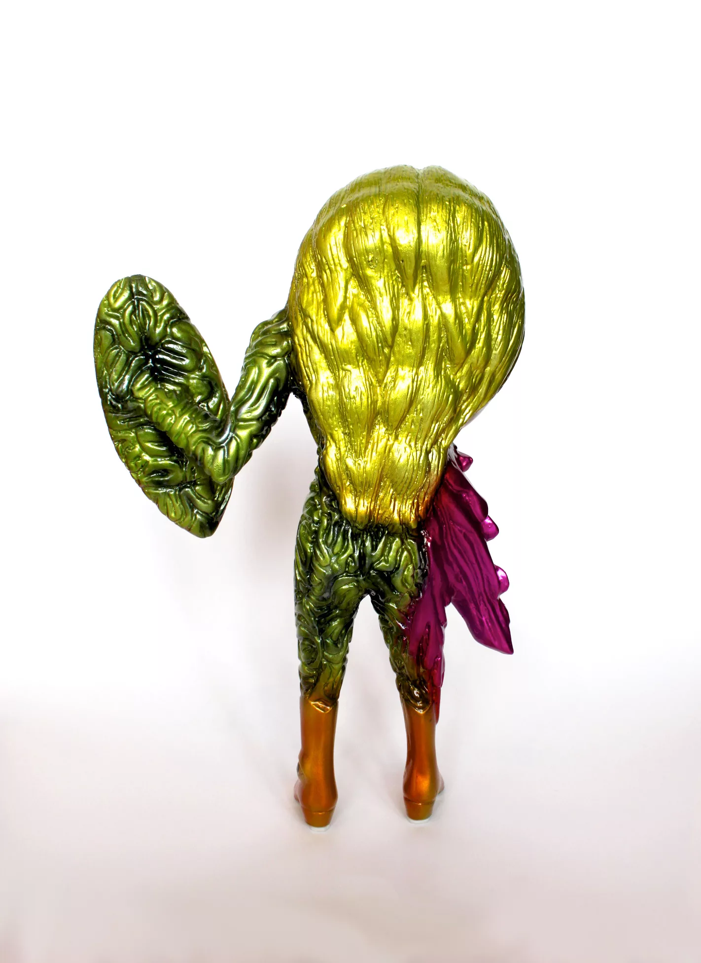 A 14″ tall fiberglass sculpture hand-painted in a variety of sprays.