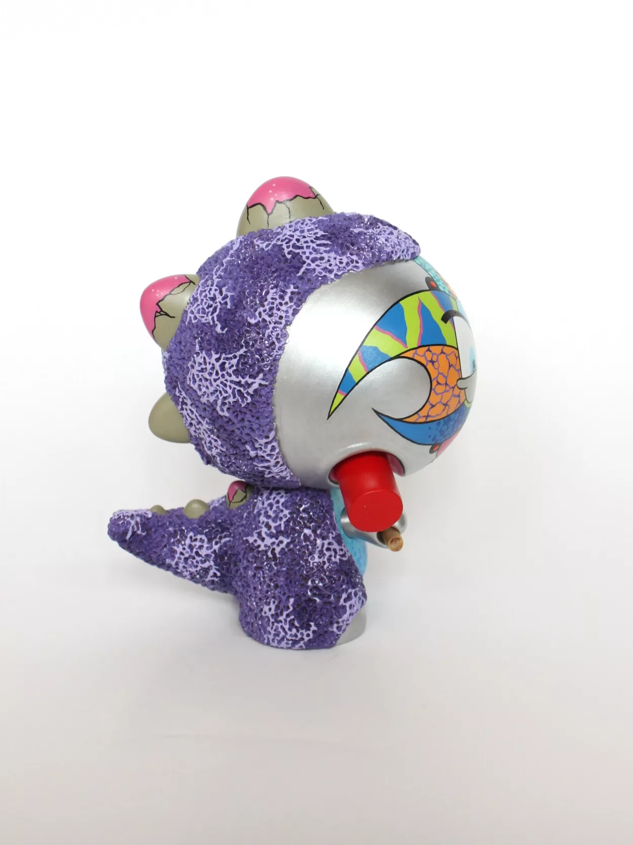 Custom 6-inch tall Raaar! vinyl figure by Sekure D, who carefully sculpted texture onto most of the platform. Includes a handmade match accessory.