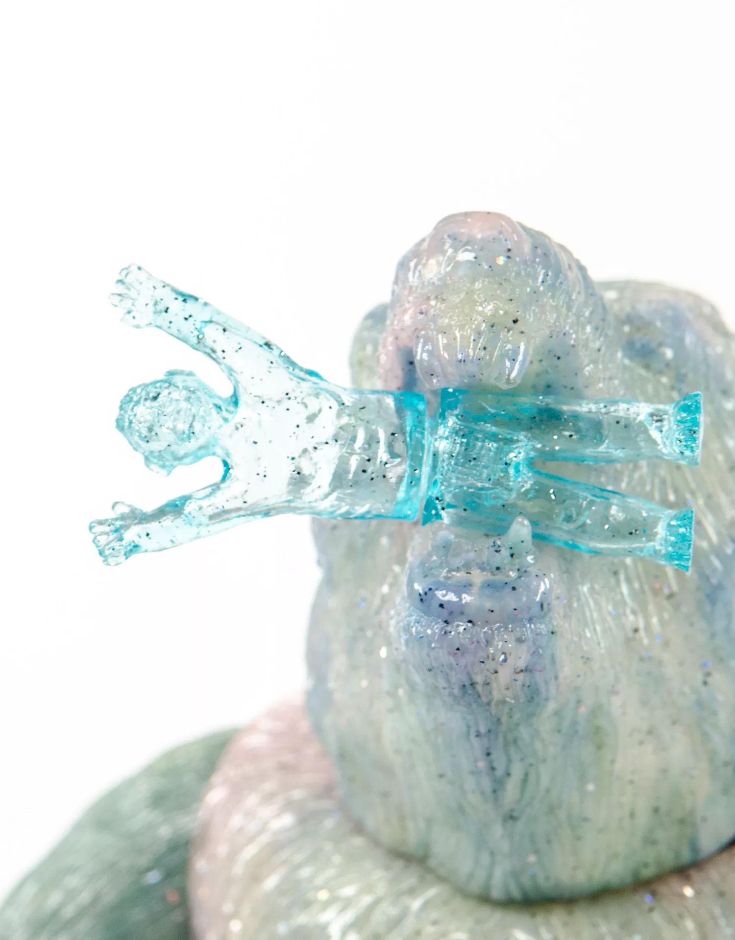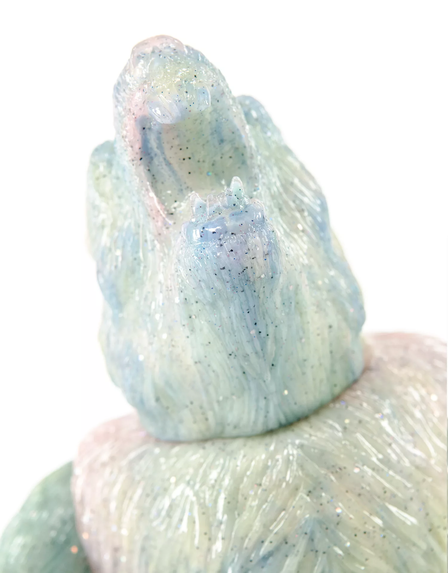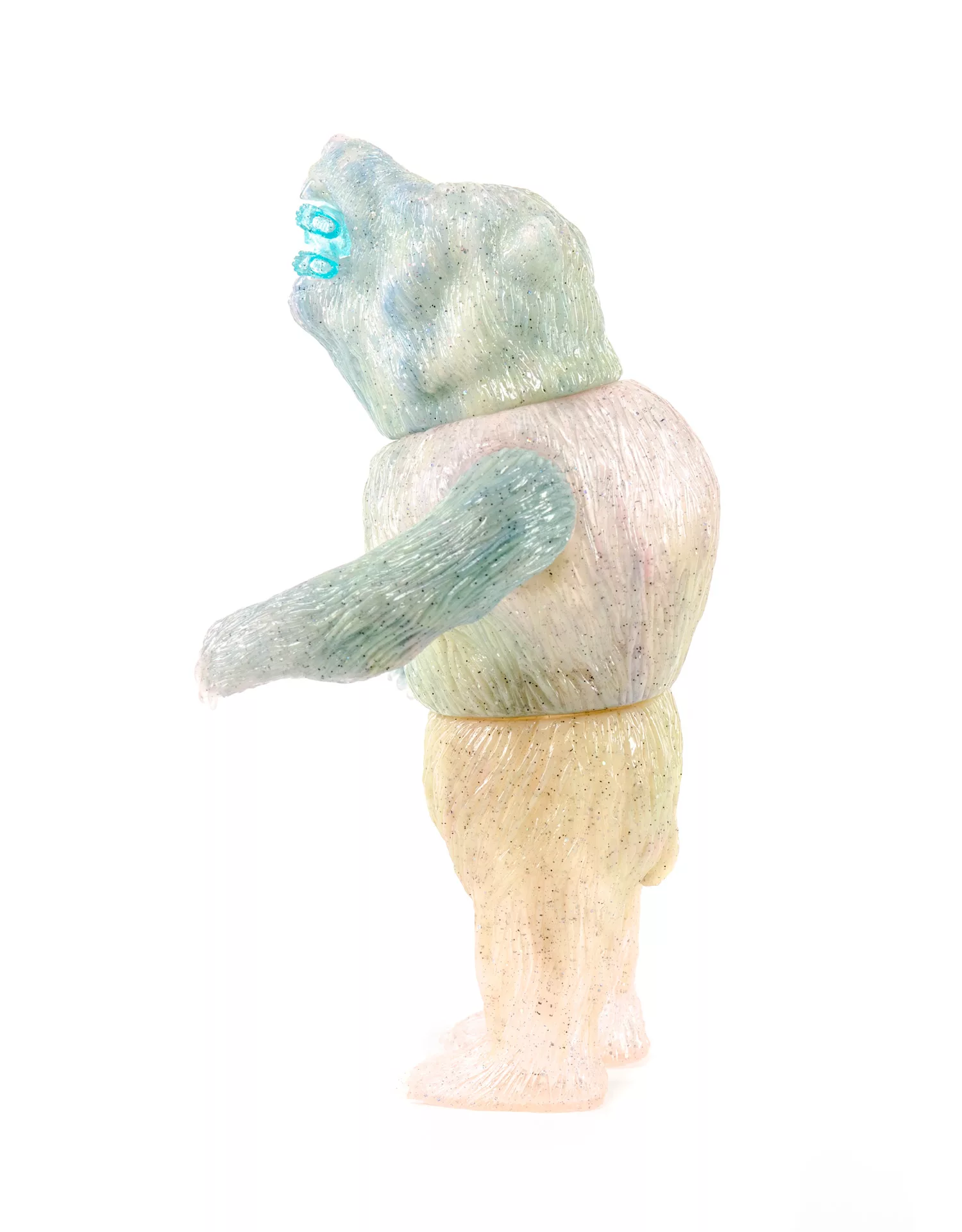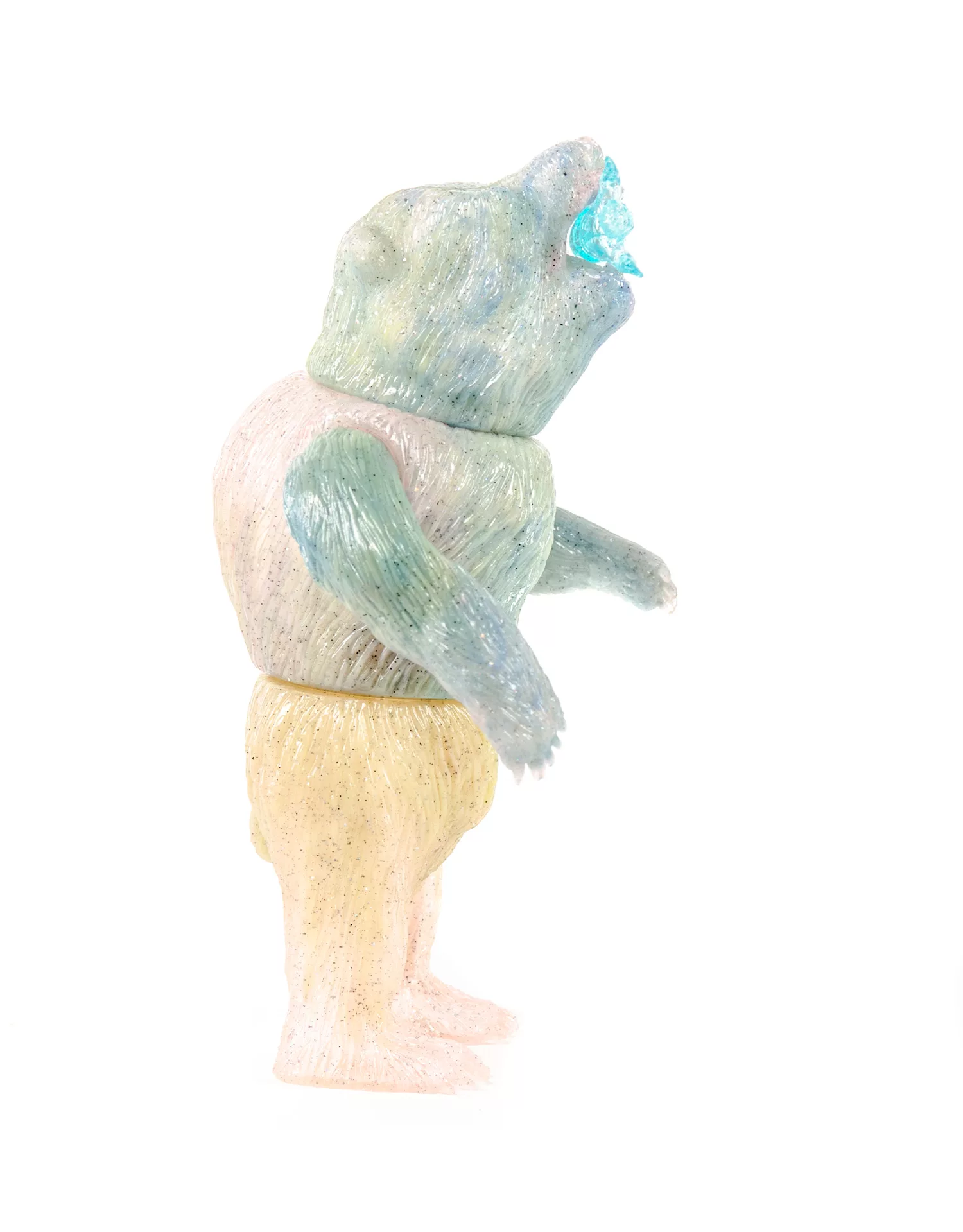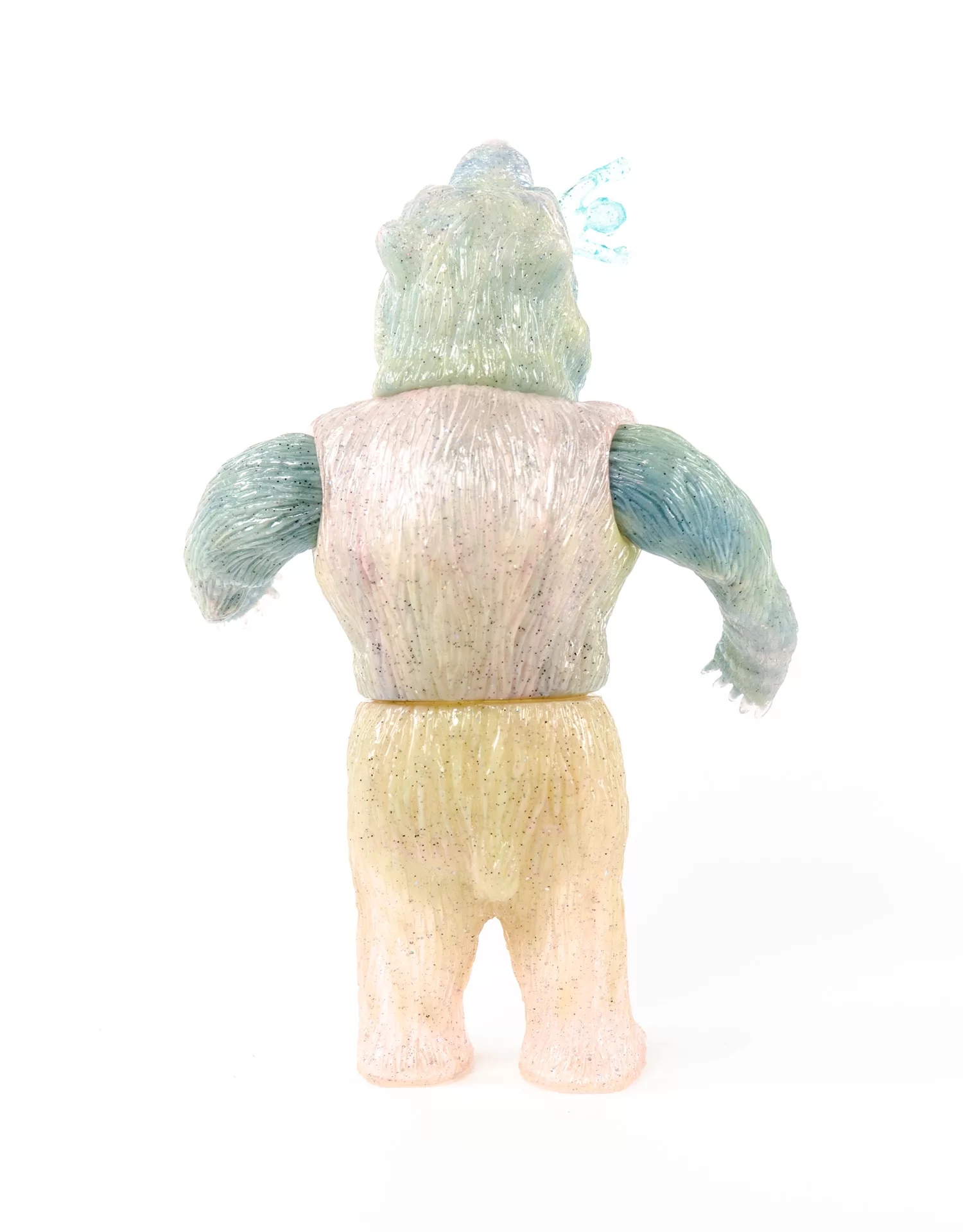 One Off Unique Japanese Soft Vinyl. This figure contains four colors – Yellow, Pink, Blue and Clear with red, blue and holographic glitter. Comes with Clear Blue Male Omake