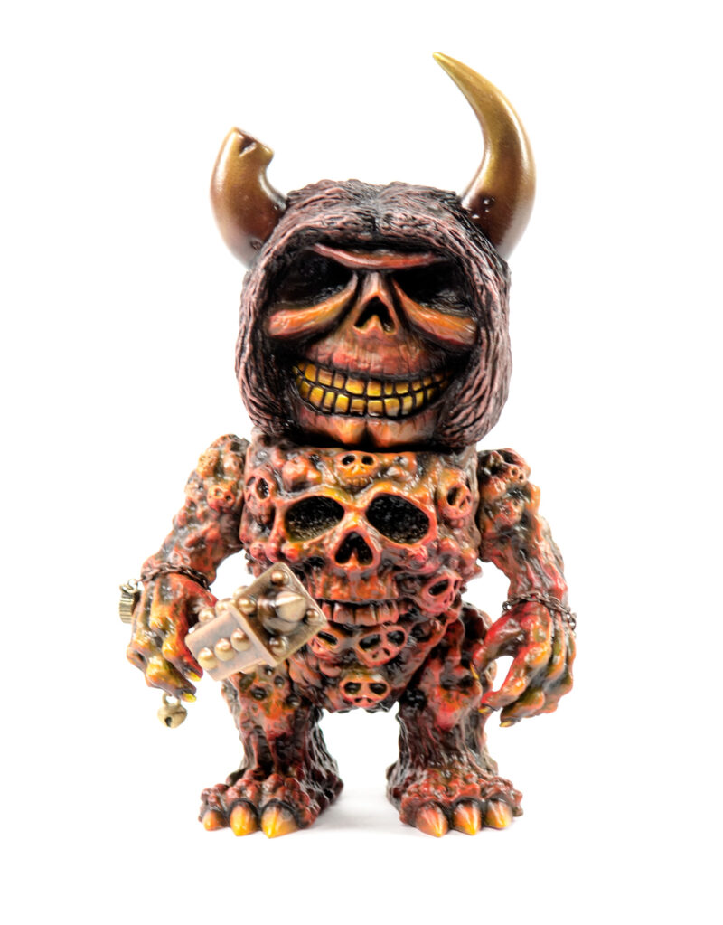 Vinyl Paint on Japanese Soft Vinyl. One off Grinning Hag DX with custom horns and mace by RT x MVH.