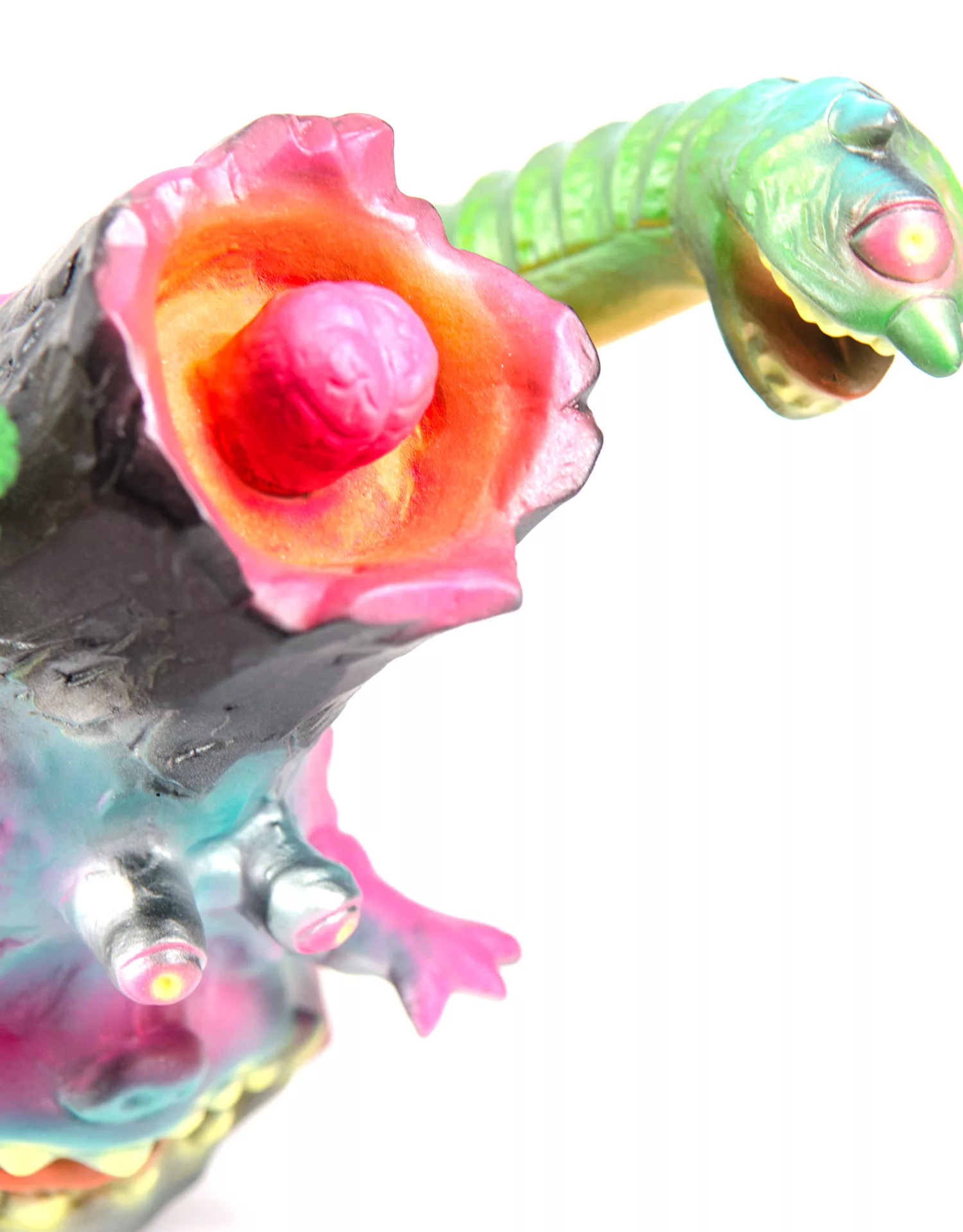 One-Of-A-Kind Jimagon Sofubi by Elegab, paint by MFC. Standing approx 10″ tall.