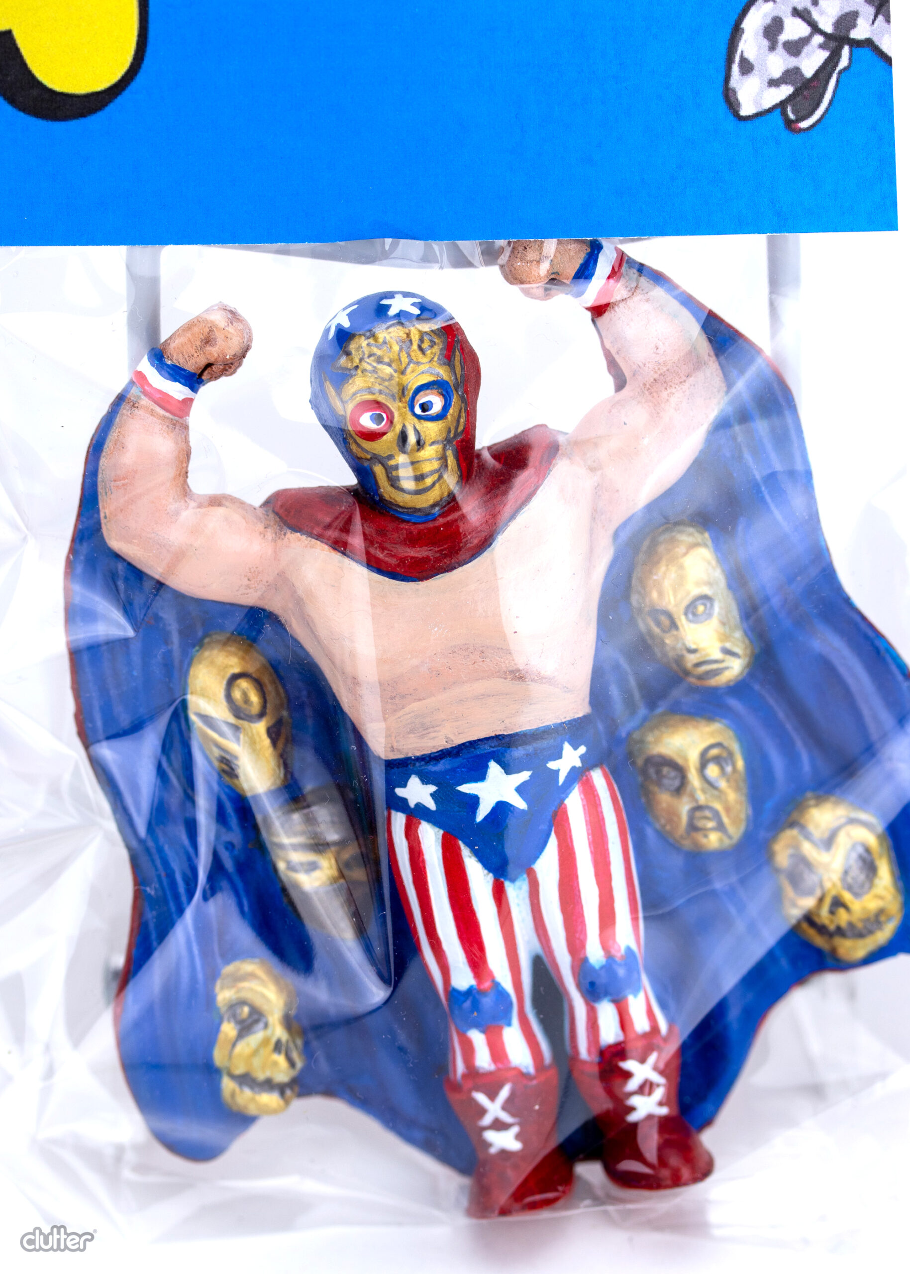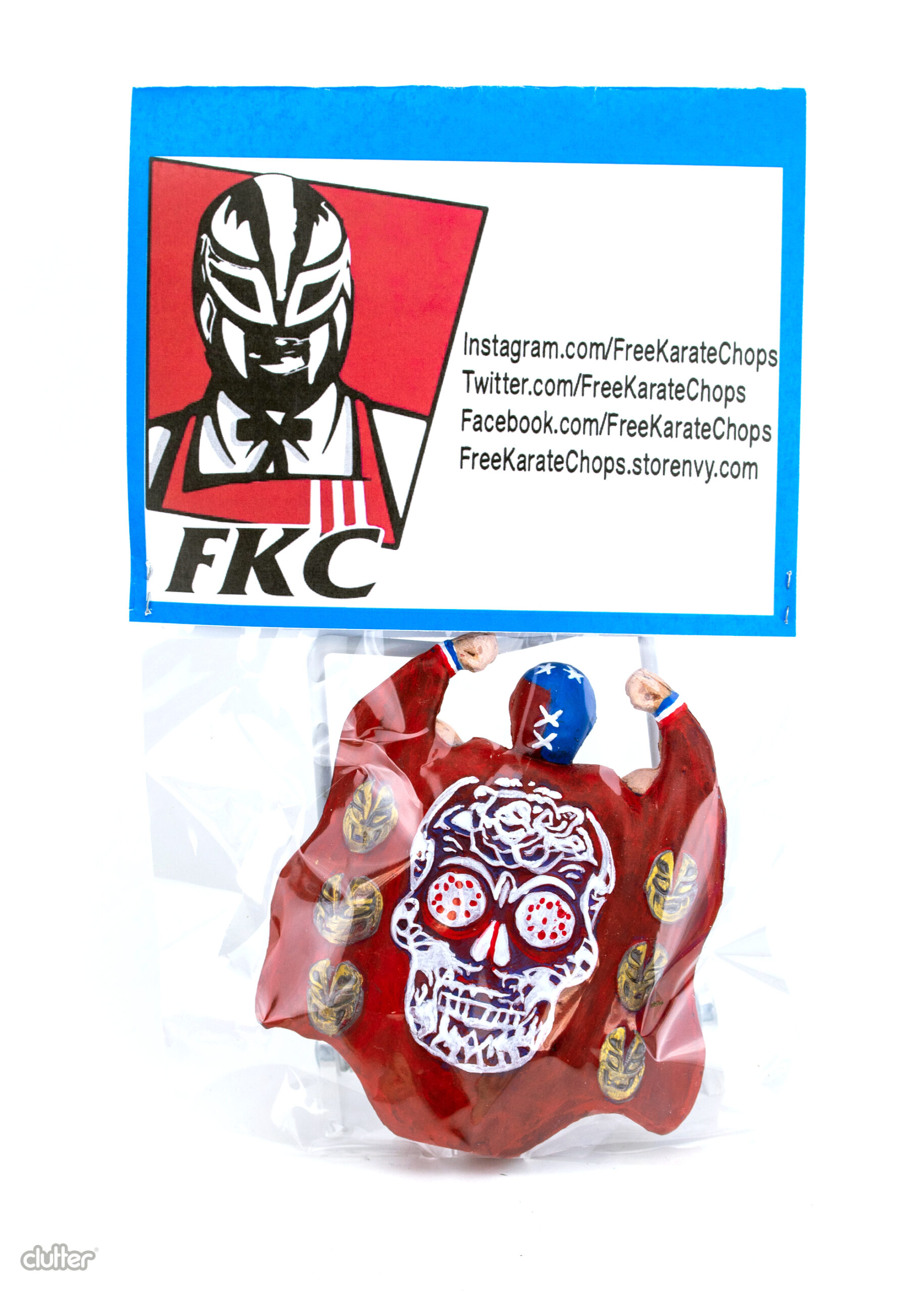 Resin , A larger version of L.U.C.H.A series 4 figure Mascara de la Muerte. 6 pieces. SHIPPING INFORMATION: All gallery items will be shipped within 10 business days of the exhibition’s conclusion. One-off Pieces will remain on display for the duration of the exhibit. Shipping charges for gallery exhibition pieces will be invoiced separately. Shipping invoices will be sent within approximately 10 business days of the exhibit’s end, or — in the case of already completed exhibits — within 4 business days of the order being placed, unless shipping is calculated at the time of check out. Domestic orders will receive a PayPal request for shipping, international orders will be emailed.