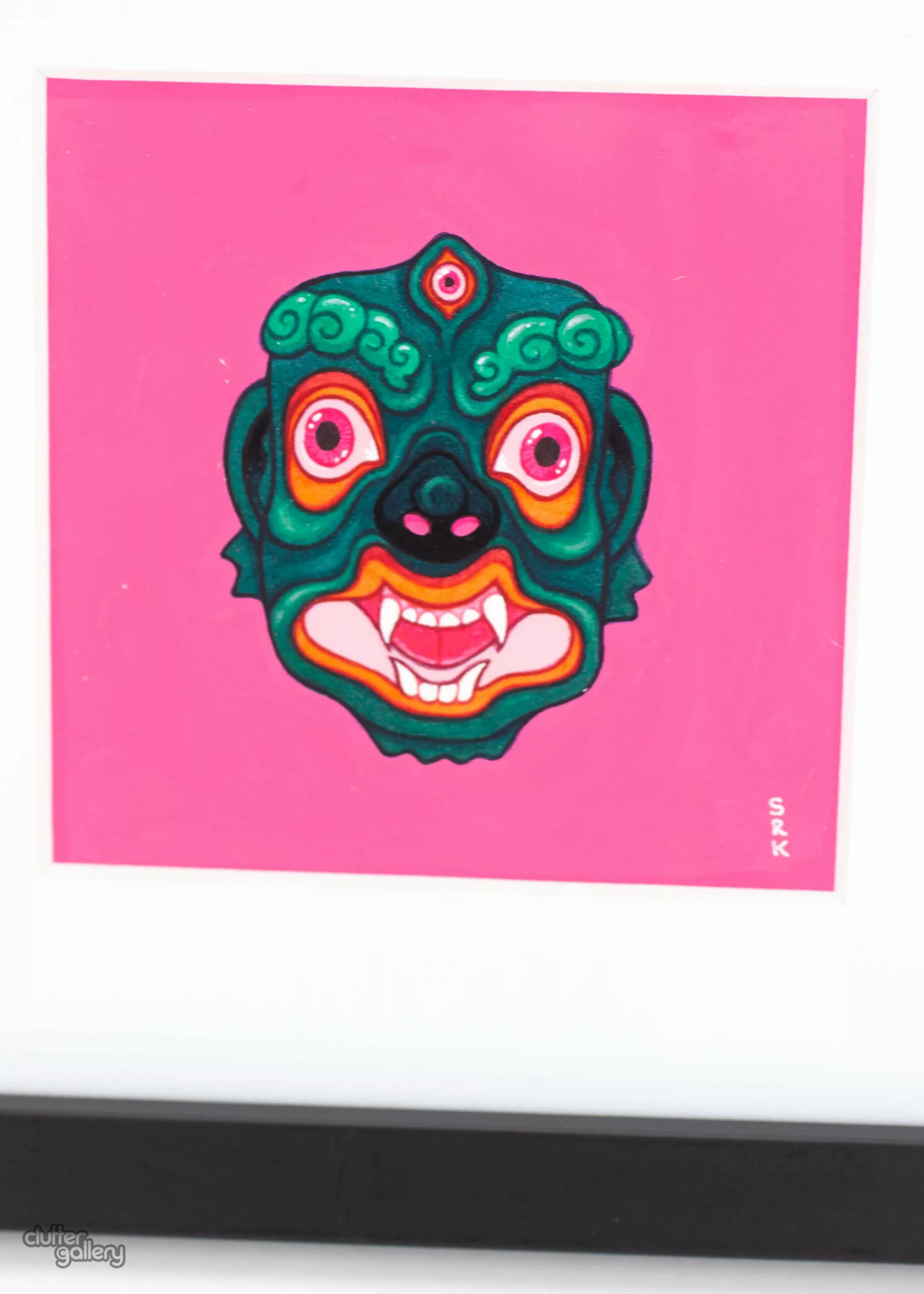 One of a series of four mini paintings, each interpreting a different traditional mask. This piece was inspired by an antique Tibetan mask of the deity Mahakala. 5 x 5 inches (excluding frame)