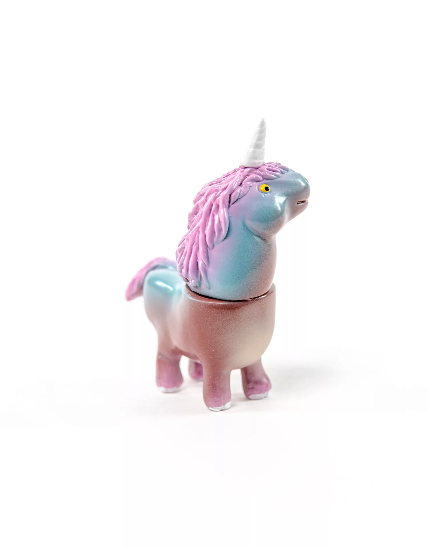 Vinyl Paint on Japanese Soft Vinyl. These little Pink Haired Unicorns are limited to a 10 piece Microrun!