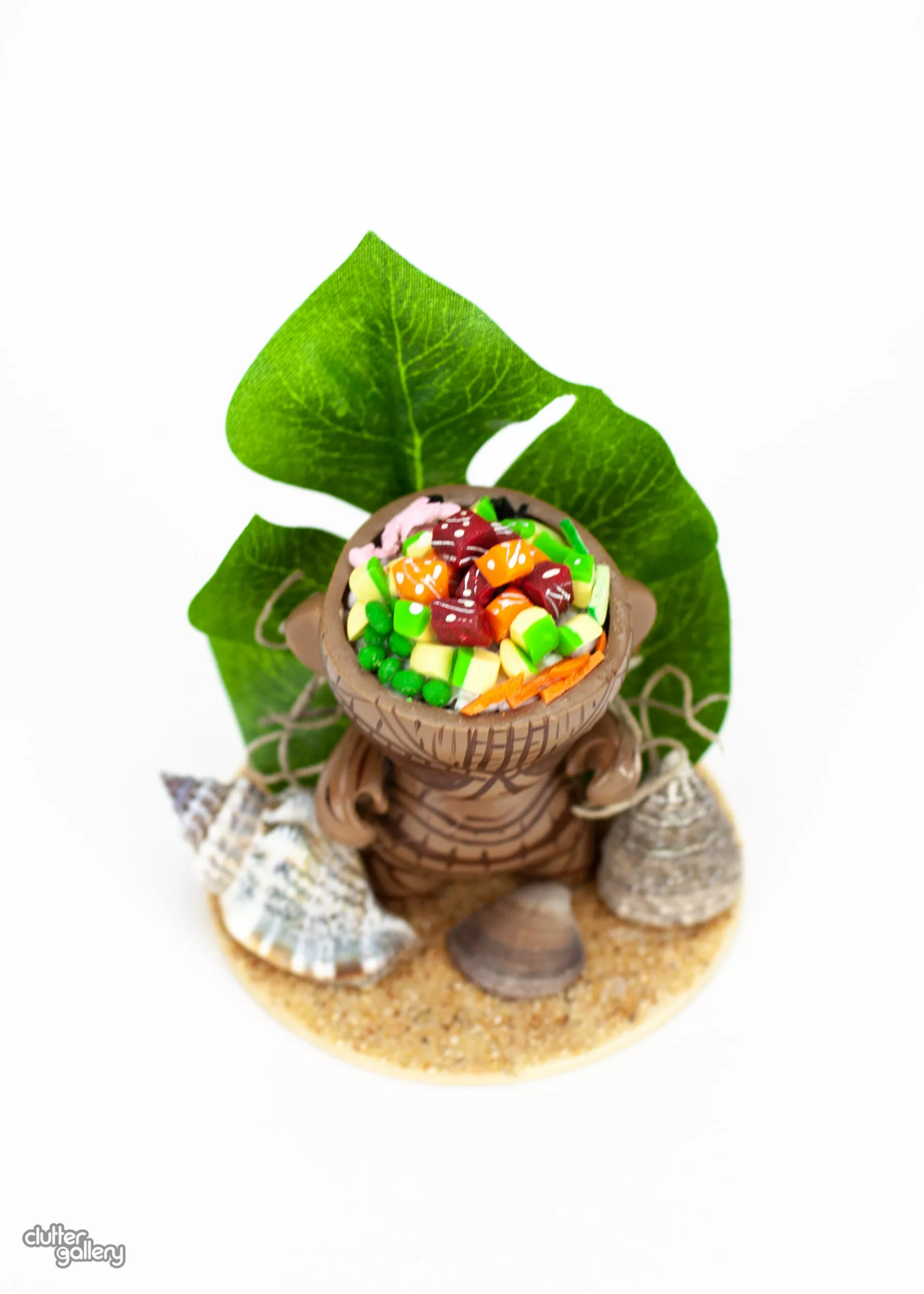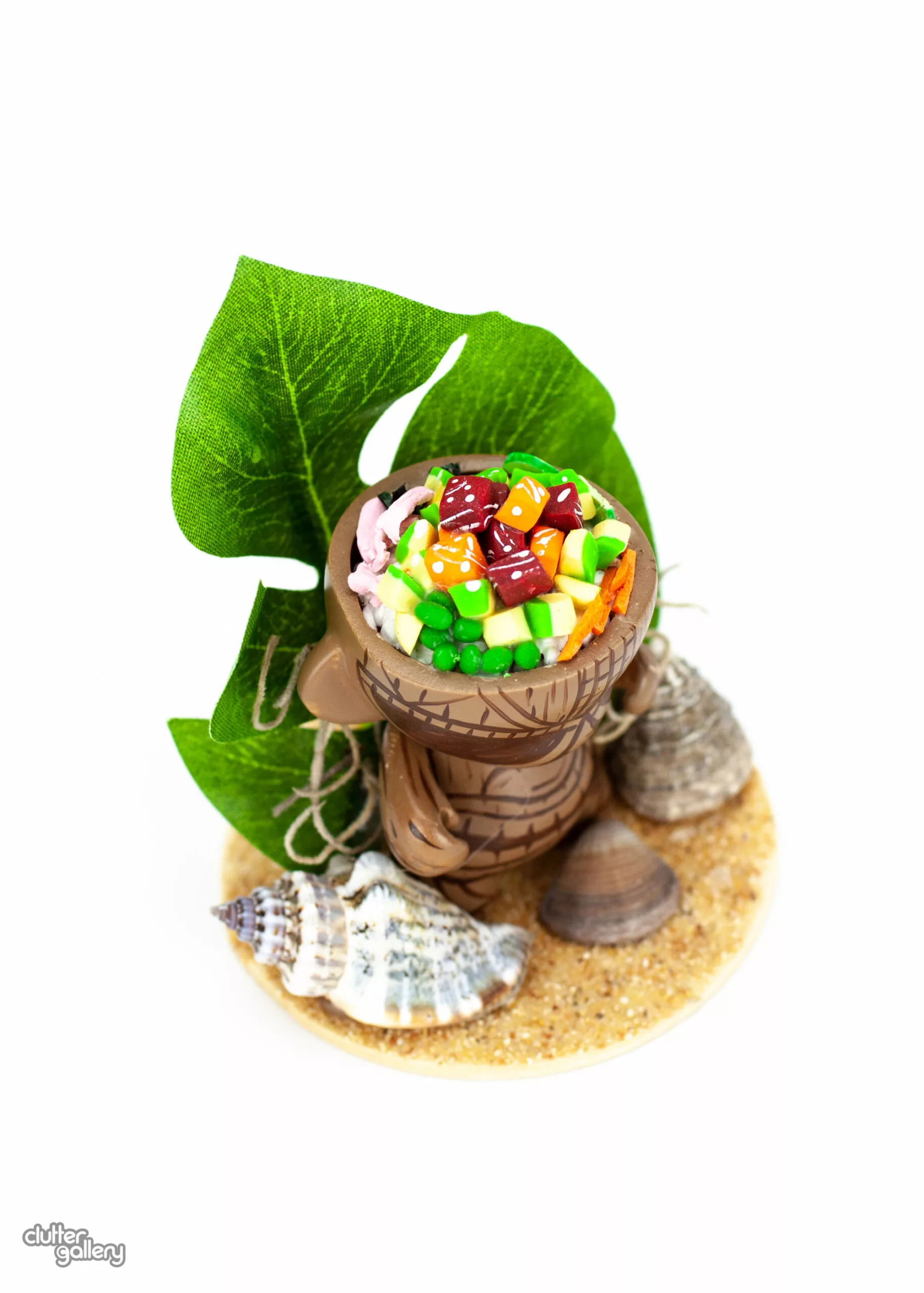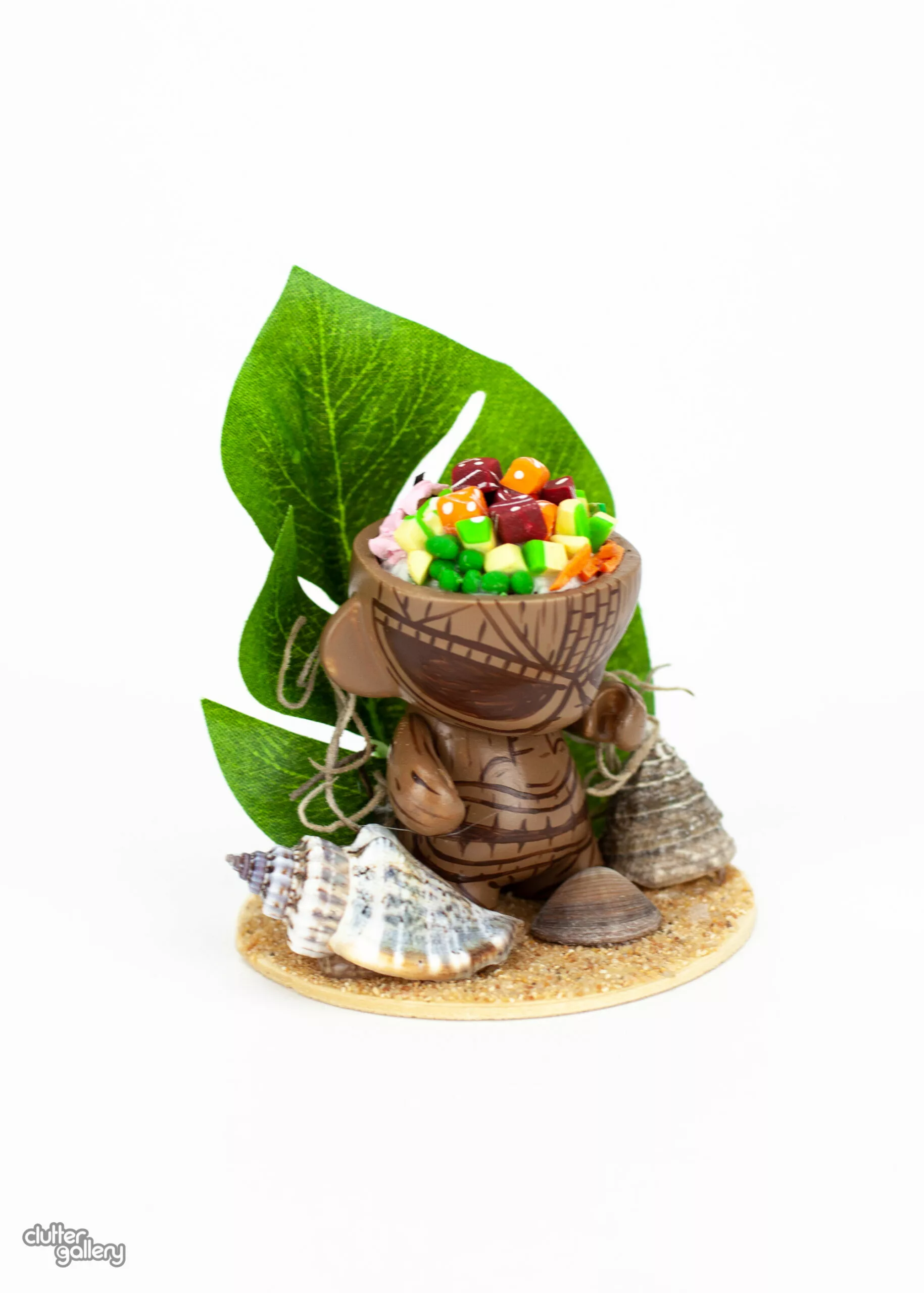 Mini Munny customized with mixed media. 2.5″ x 2.5″ x3.5″