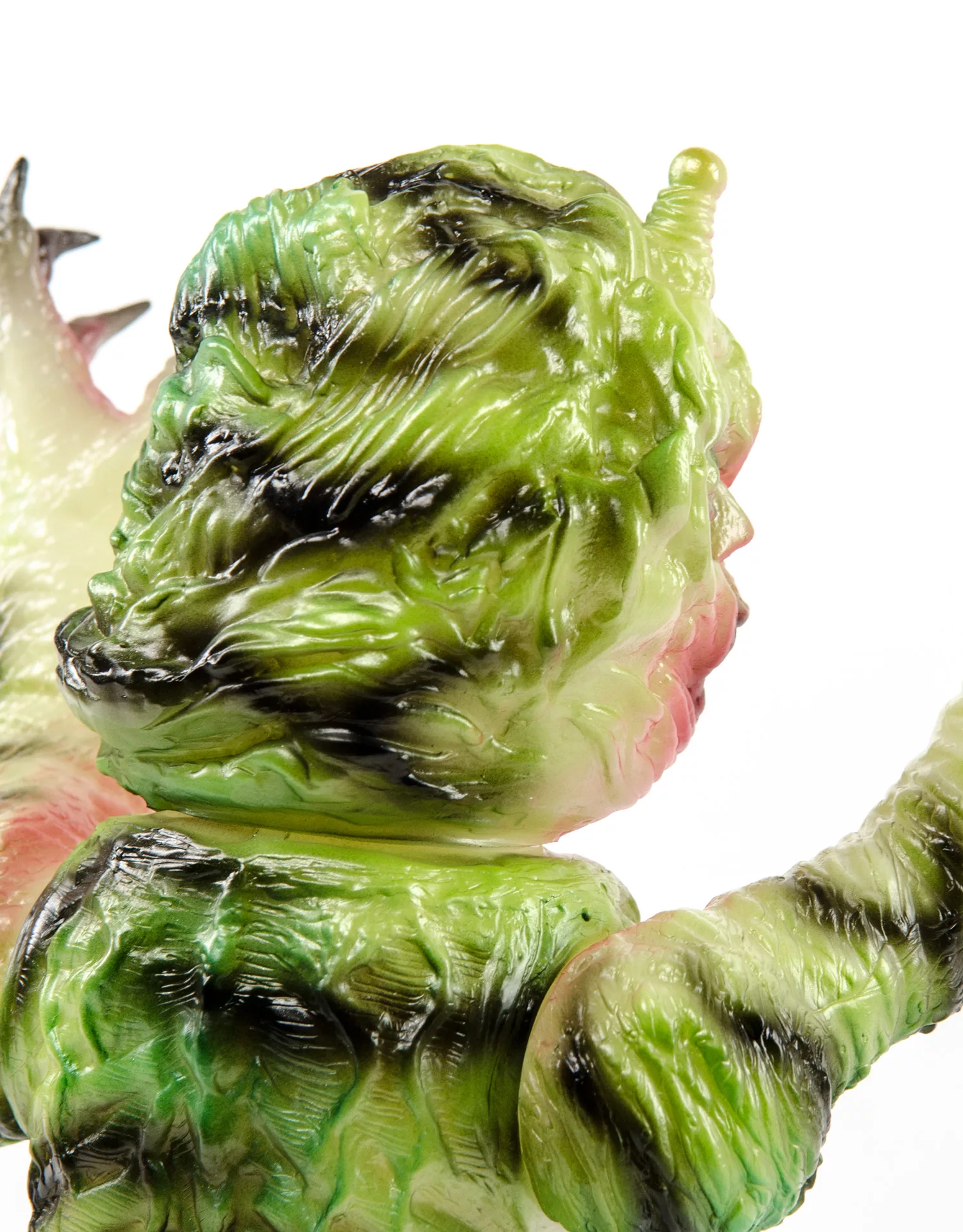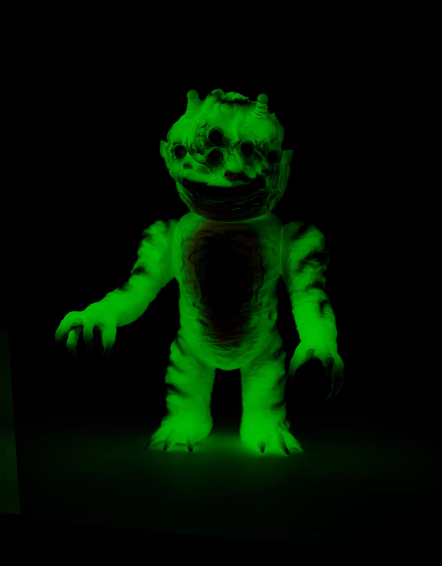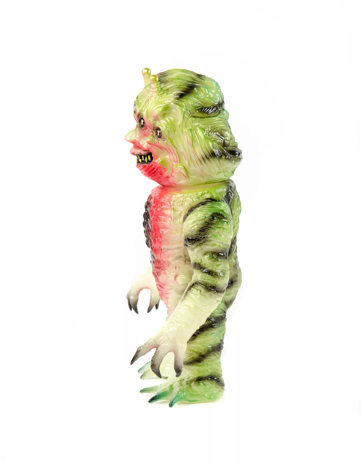 Vinyl Paint on Japanese Soft Vinyl. RT x MVH x SHB – Red, Green and Black paint apps on GID japanese soft vinyl. These monsters are limited to a 5 piece microrun.
