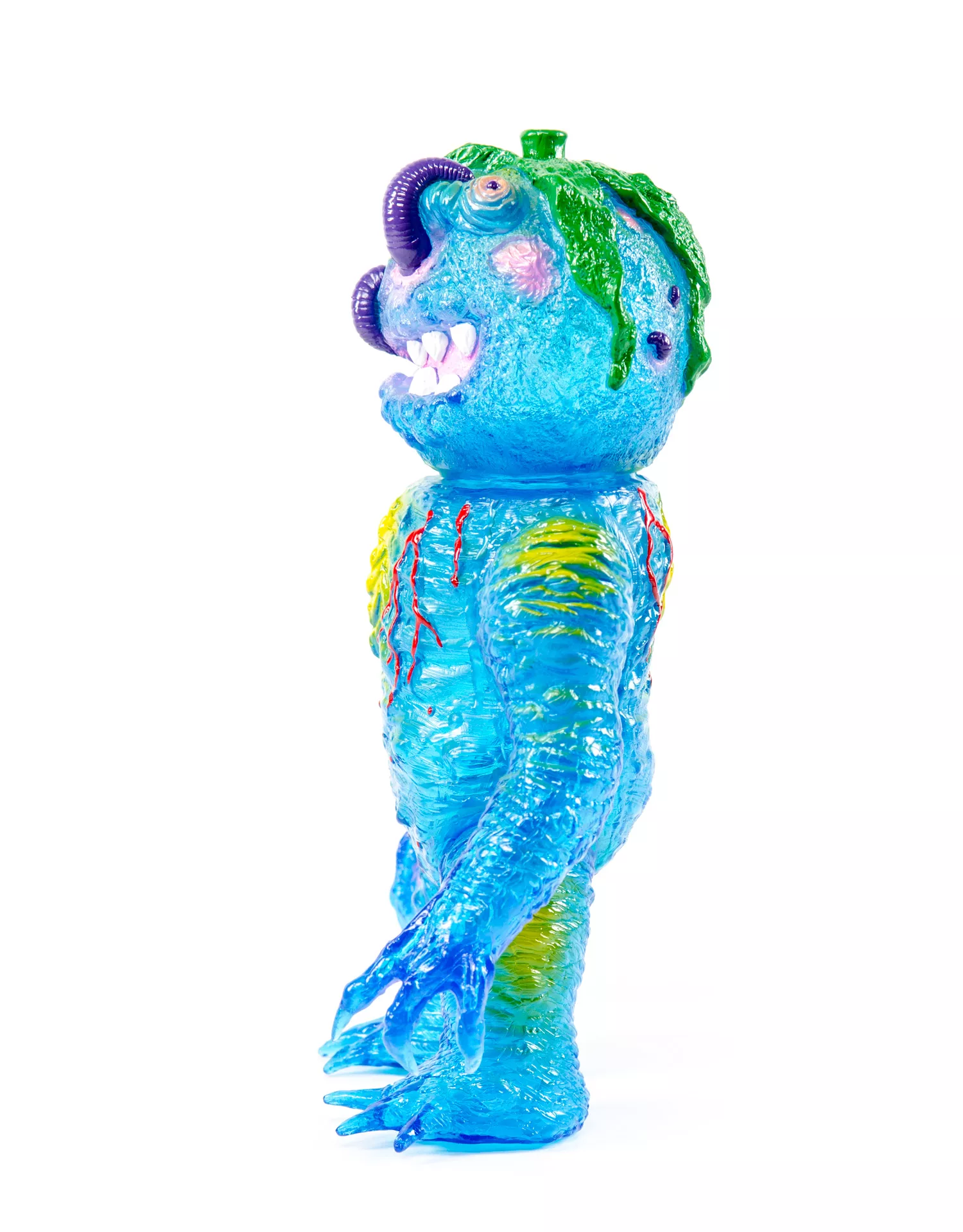 Vinyl Paint on Japanese Soft Vinyl. One off RT x SHB Rotten X pulled in clear blue painted by RT.