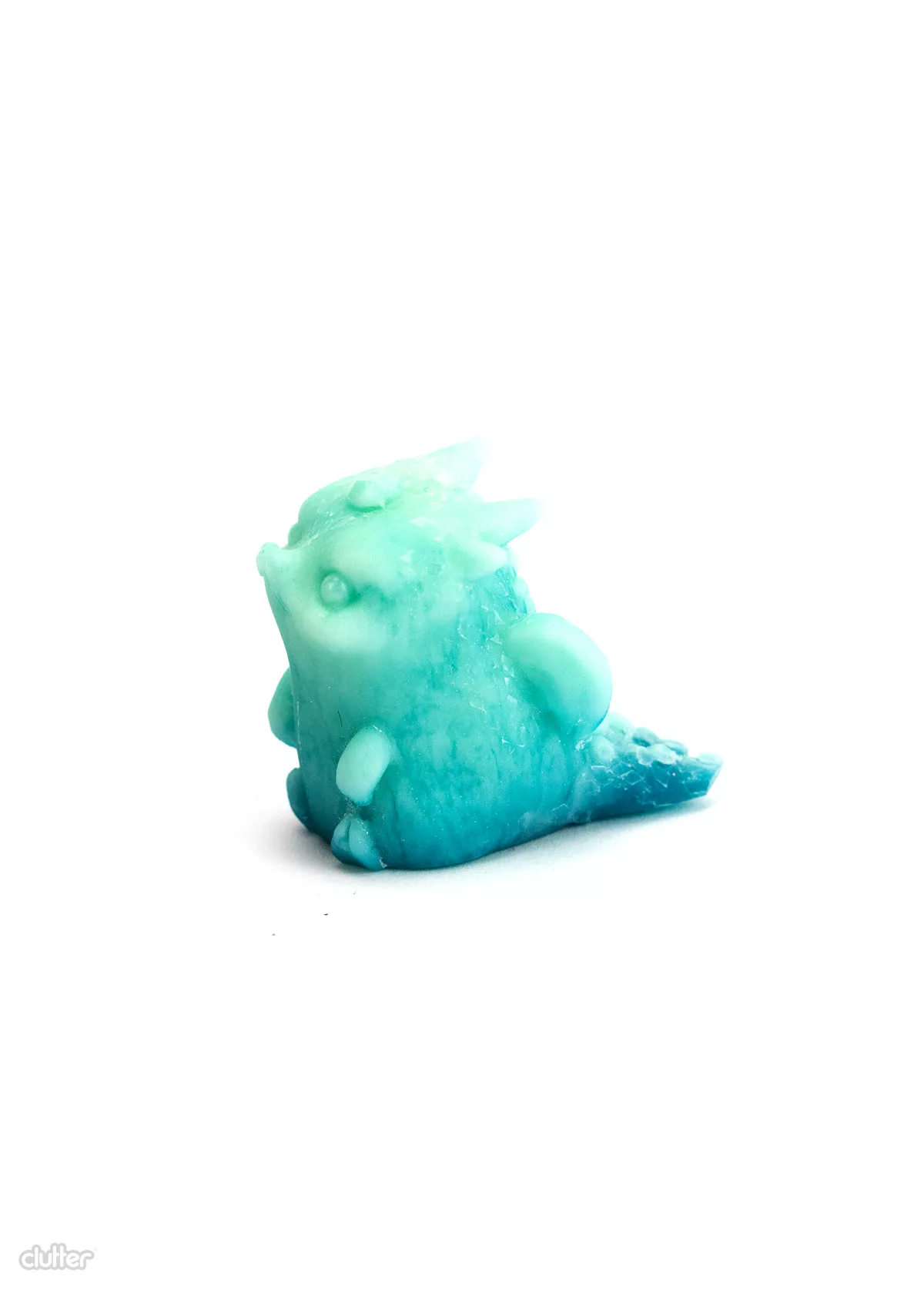 Diamondback are among the smallest dragons – full grown with about a five inch wingspan. They are poor hunters and hoarders due to their size, but they have adapted colorful scale patterns so that they can blend in among the gem caches of larger species to “share” their resources. Diamondbacks can be a bit mischievous, prone to “borrowing” things they like, and are difficult to train. They are commonly referred to as Snooters because of their snooty attitudes. Smaller, chunkier varieties have been found as well, and that variation is called a Snog. This fellow is pale green with cloudy white. Resin, about 1″ tall.