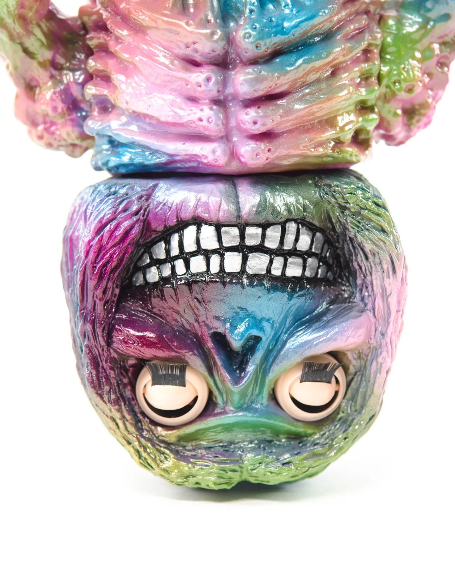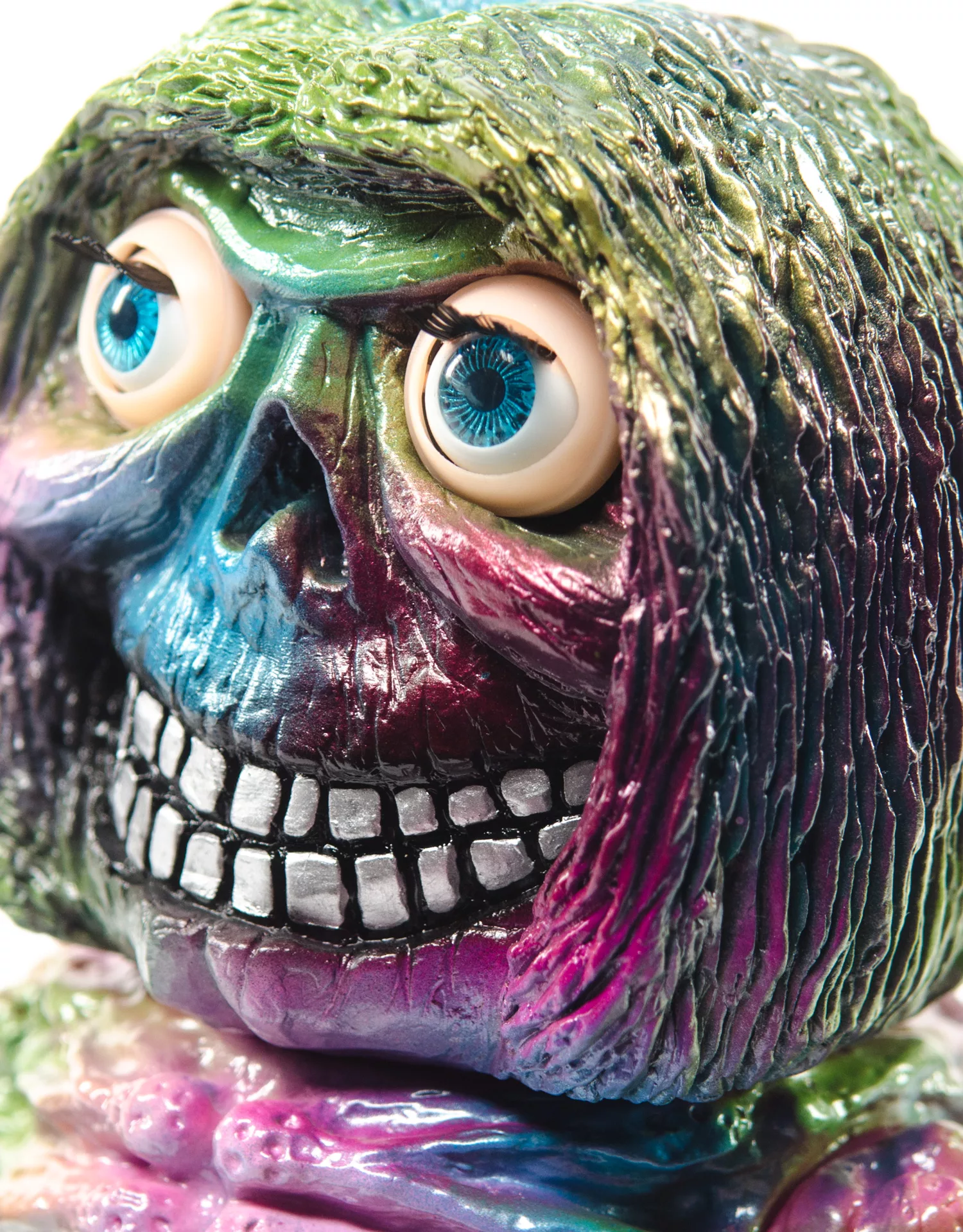 Vinyl Paint on Japanese Soft Vinyl. One off Grinning Hag DX with moving, sleepy eyes by RT x MVH.